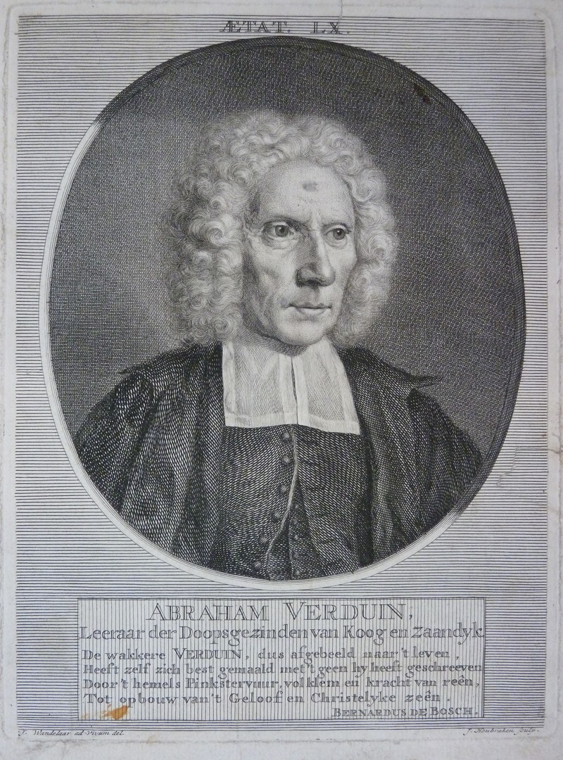 Portret van Abraham Verduin (1668-1756), doopsgezind leraar te Zaandijk en Koog aan de Zaan