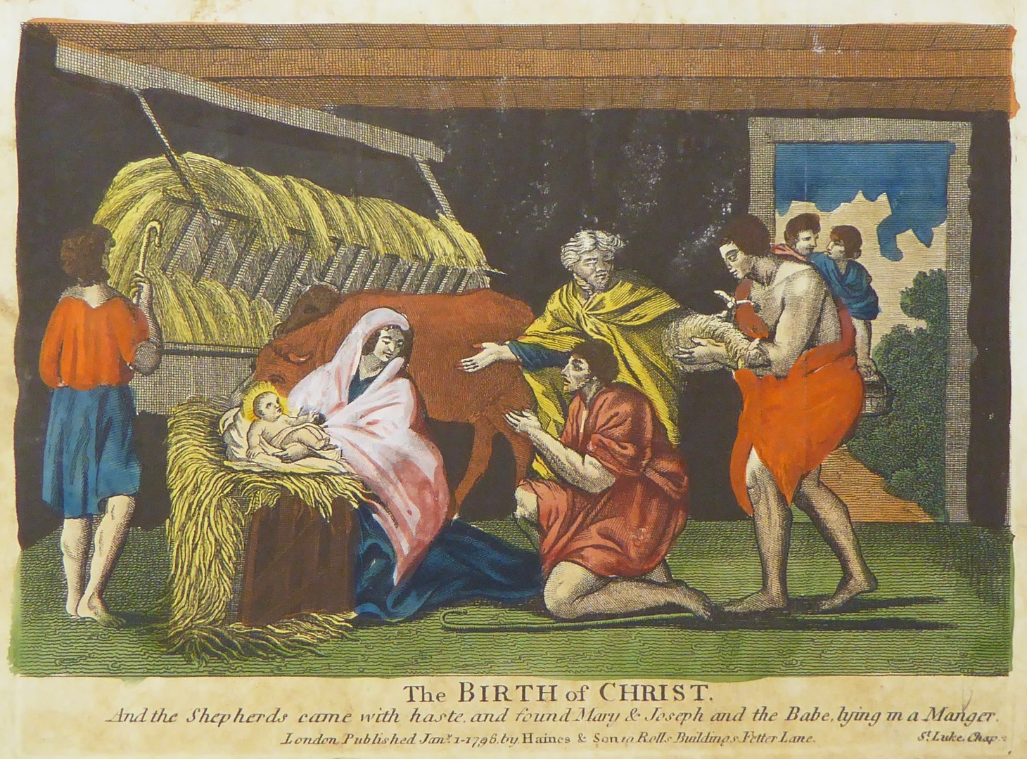 De geboorte van Christus (Engels) met H. Familie en herders, ingekleurd