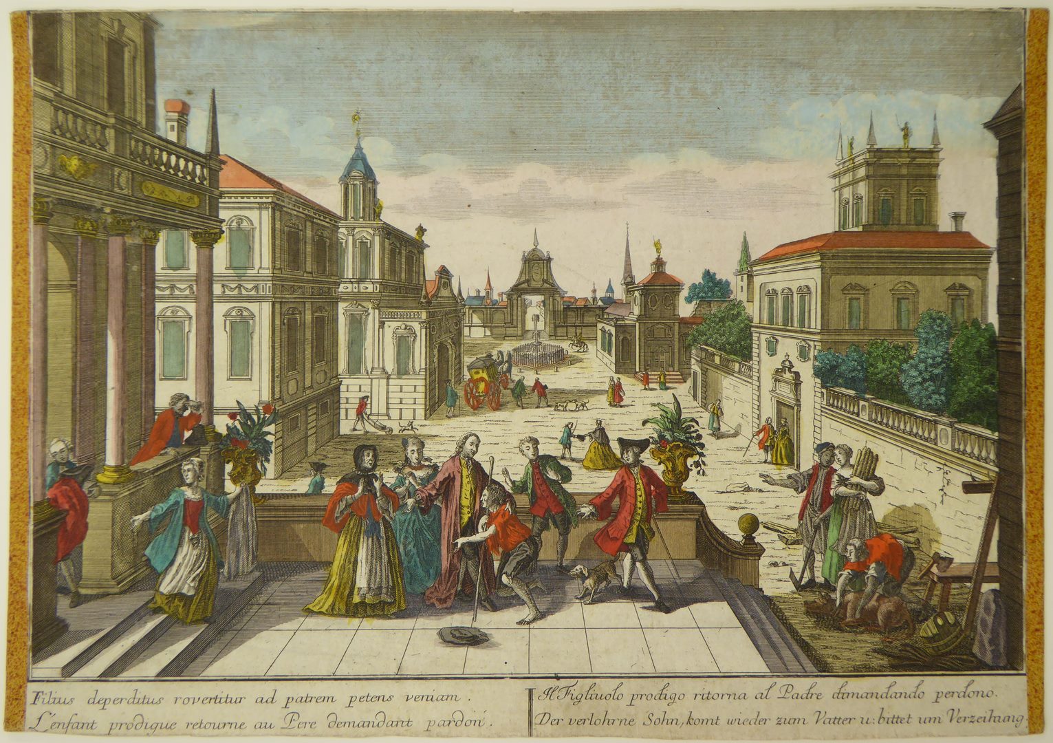 Verloren zoon, serie opticaprenten (ingekleurd): de terugkeer van de zoon