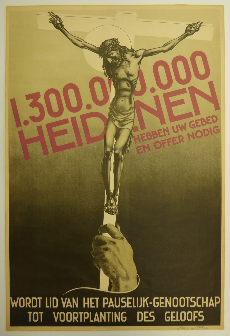 Affiche met crucifix, "... pauselijk-genootschap tot voortplanting des geloofs"