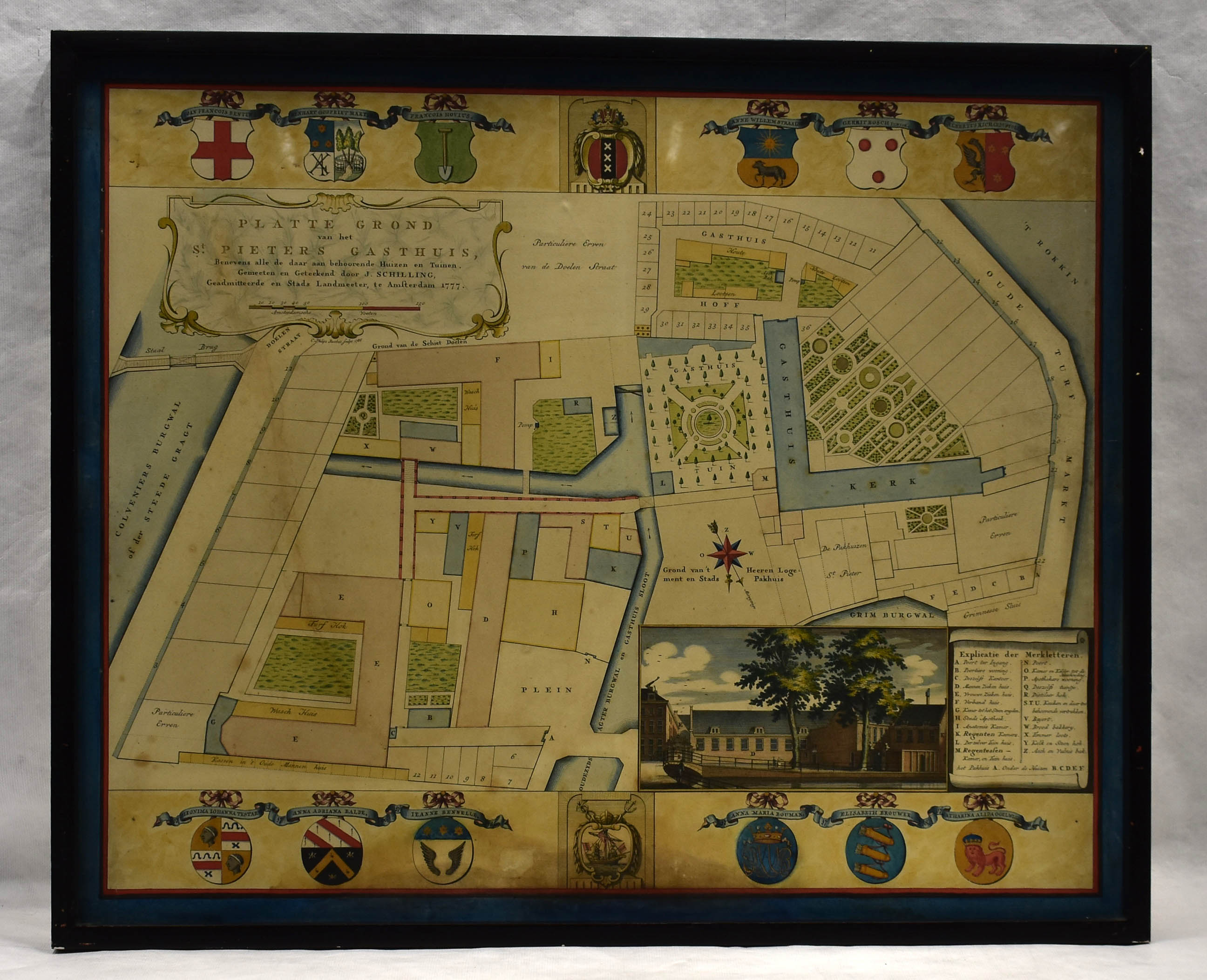 Amsterdam, plattegrond van het Pieters- of Binnengasthuis, ingekleurd