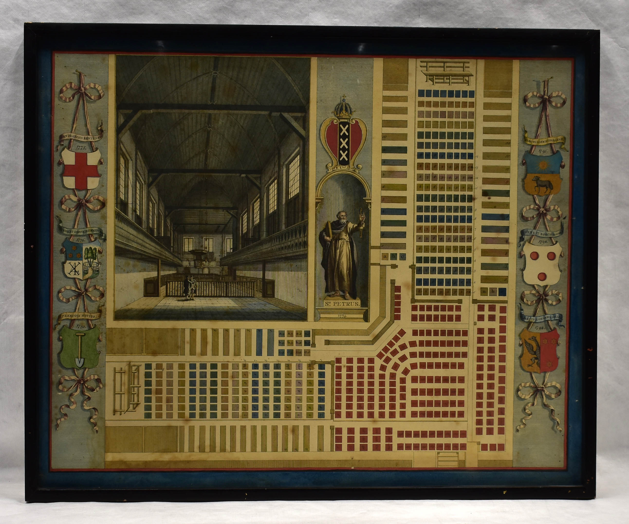 Amsterdam, plattegrond van de gasthuiskerk van het Pietersgasthuis, ingekleurd