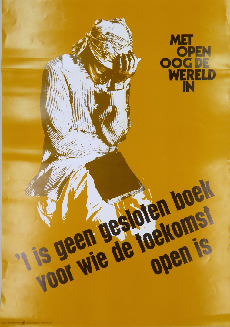 Affiche "Met open oog de wereld in, 't is geen gesloten boek voor wie de toekomst open is"