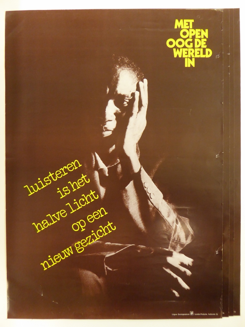 Affiche "Met open oog de wereld in, luisteren is het halve licht op een nieuw gezicht"