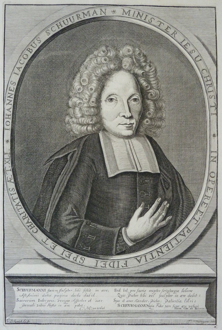 Portret van Johannes Jacobus Schuurman, predikant te Kleef, met Latijns onderschrift