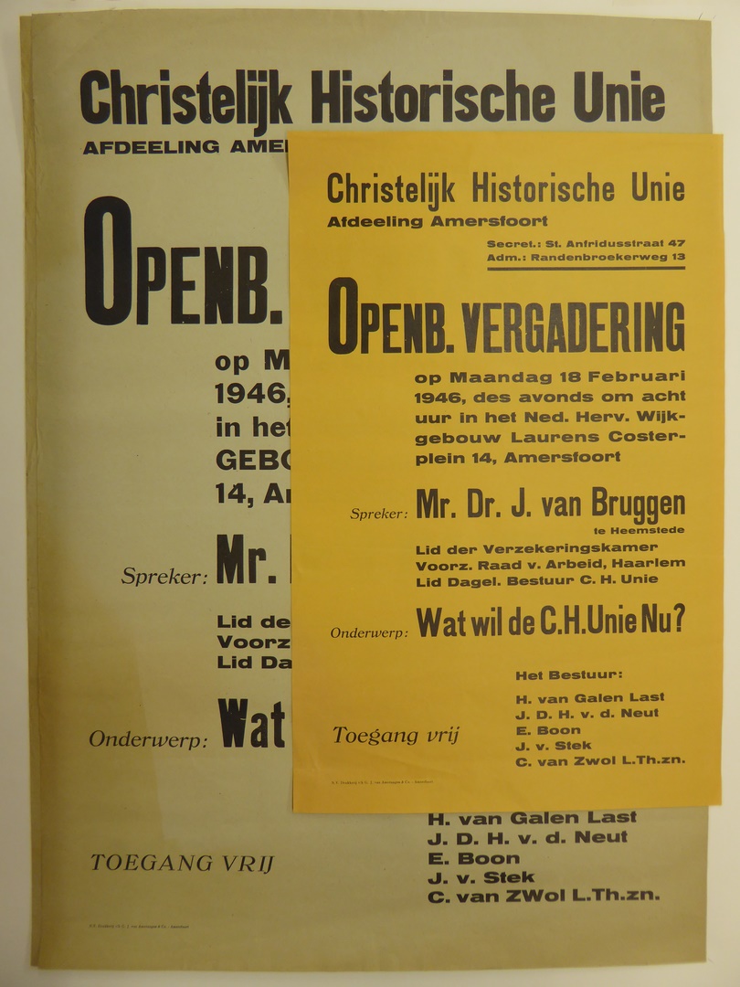 Affiche van de CDU afd. Amersfoort voor openbare vergadering 18 febr. 1946
