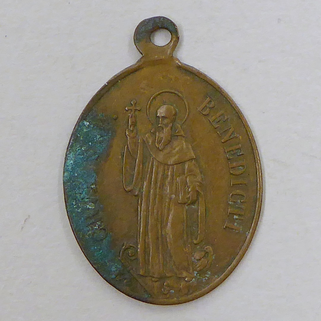 Scapulierpenning, Benedictuspenning, ovaal, kz. Benedictuskruis