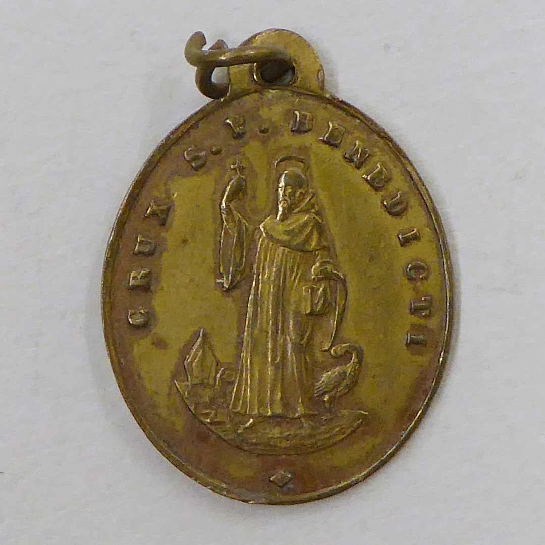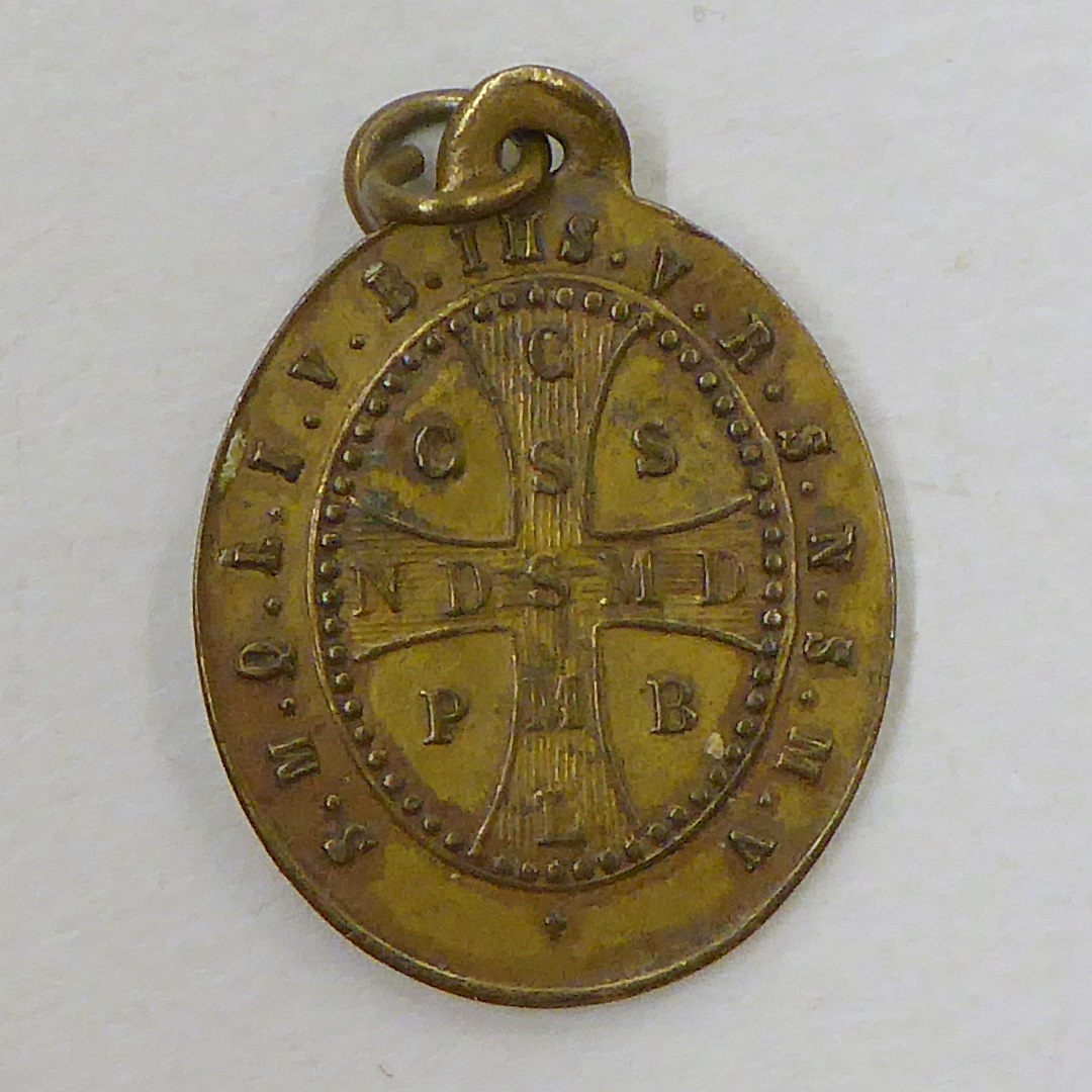Scapulierpenning, 'Benedictusmedaille', ovaal, kz. Benedictuskruis