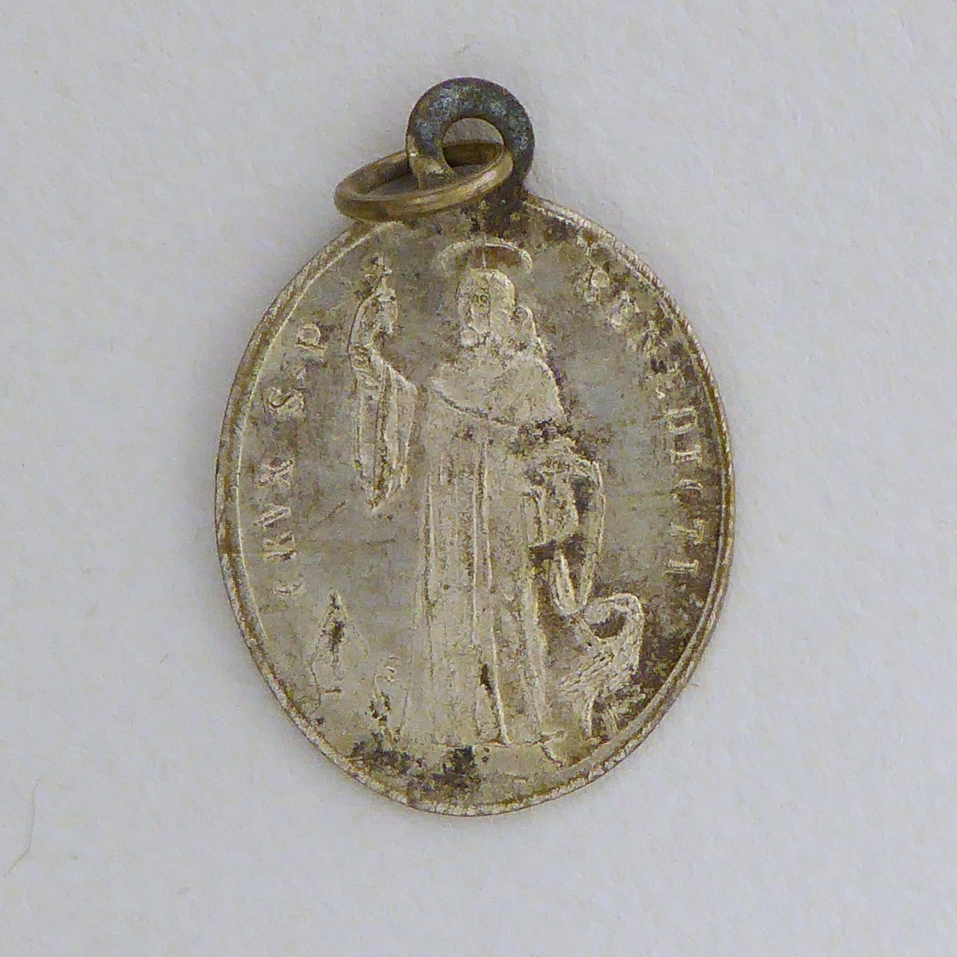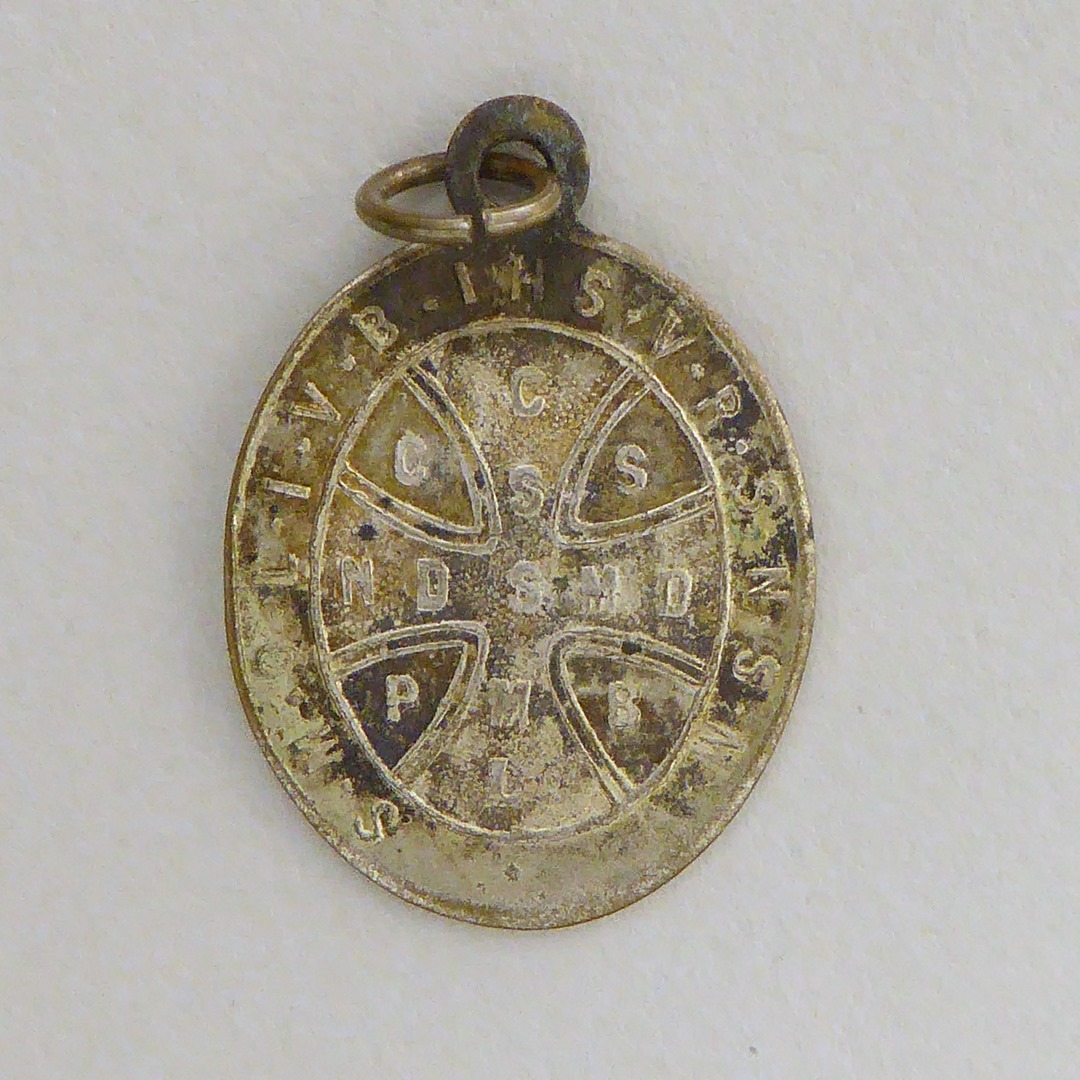 Scapulierpenning, 'Benedictusmedaille', ovaal, kz. Benedictuskruis