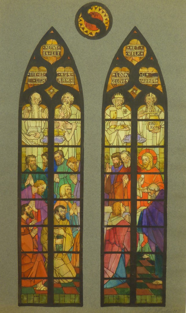 Ontwerp twee glasramen met het laatste avondmaal