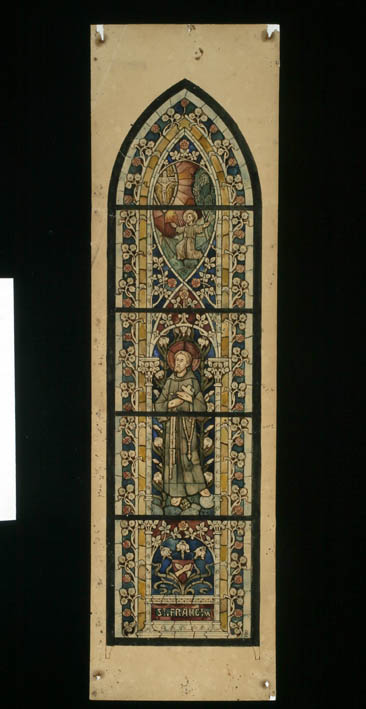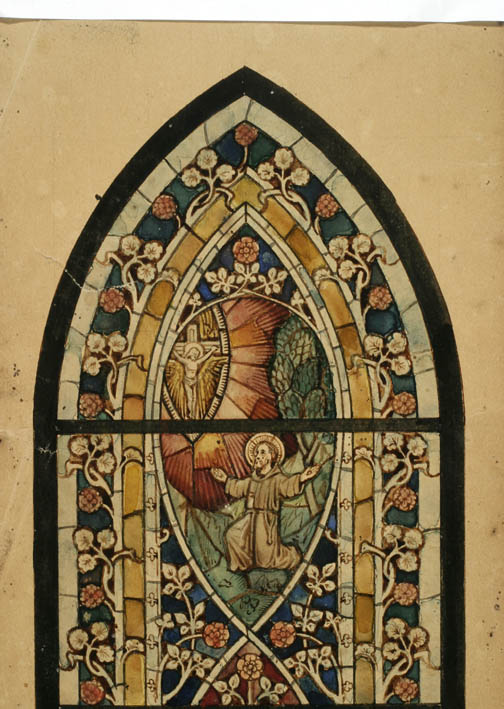 Ontwerp glasraam met St. Franciscus, idem stigmata ontvangend