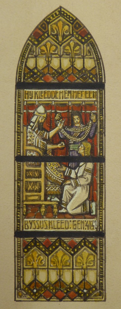 Ontwerp glasraam met Jozef en de farao (Gen.41-42)