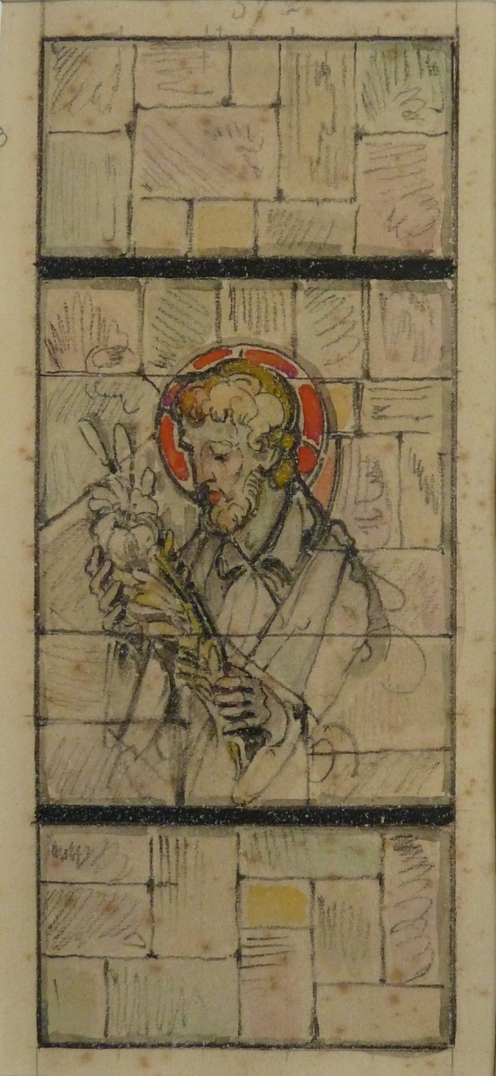 Ontwerp glasraam met Jozef met lelietak