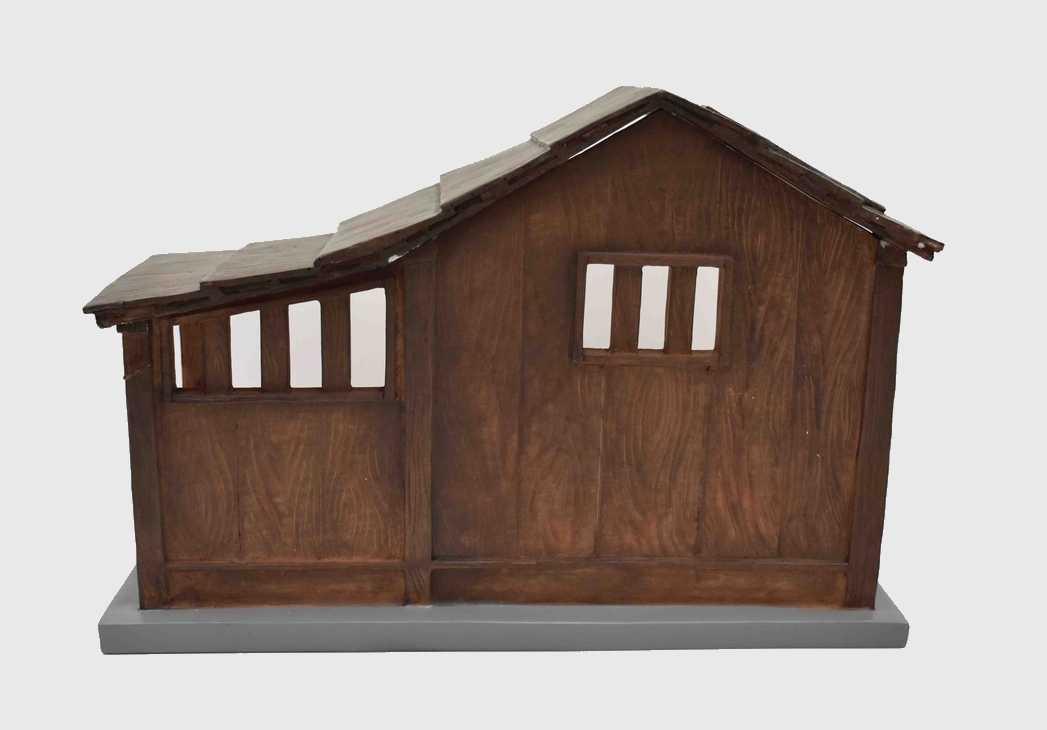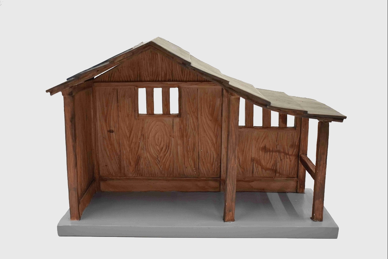 Hipster kerstgroep: kerststal met zonnepanelen op het dak