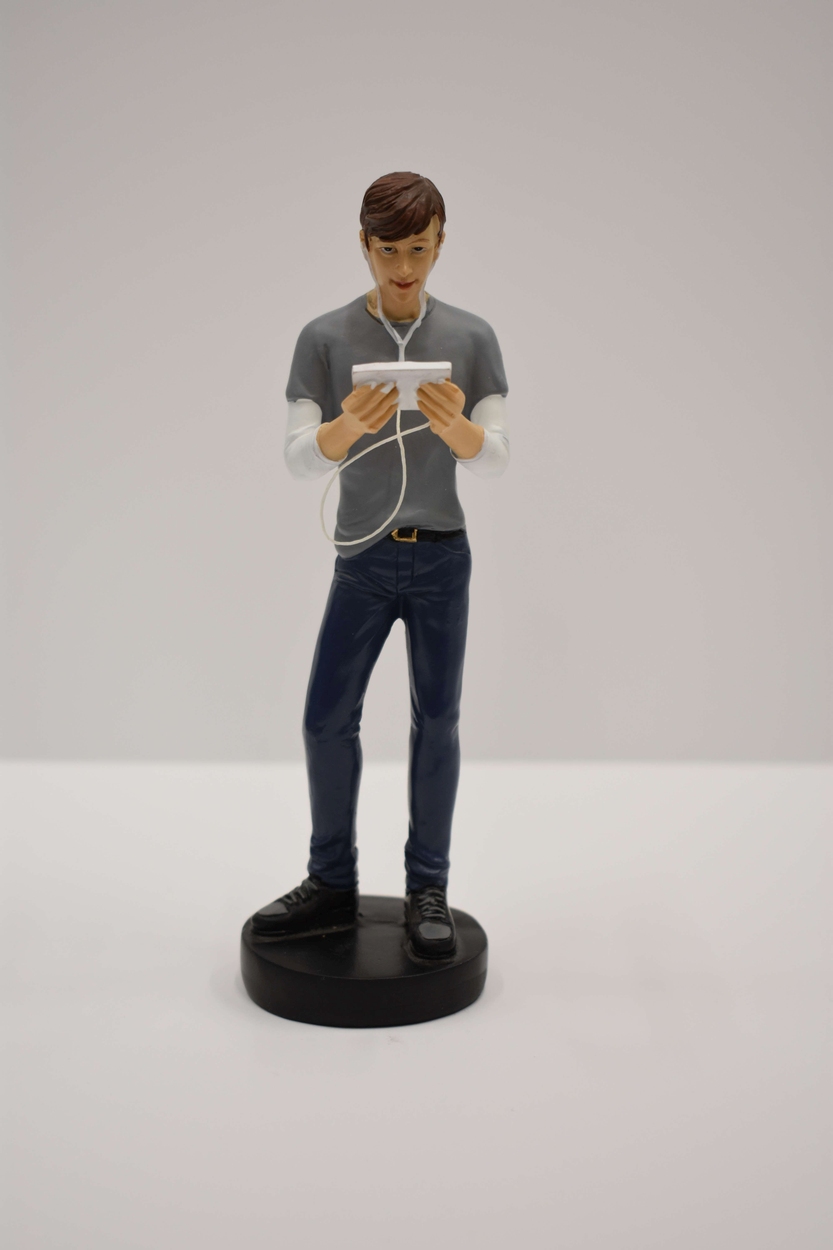 Hipster kerstgroep: herder met tablet, die de geboortescène snapchat