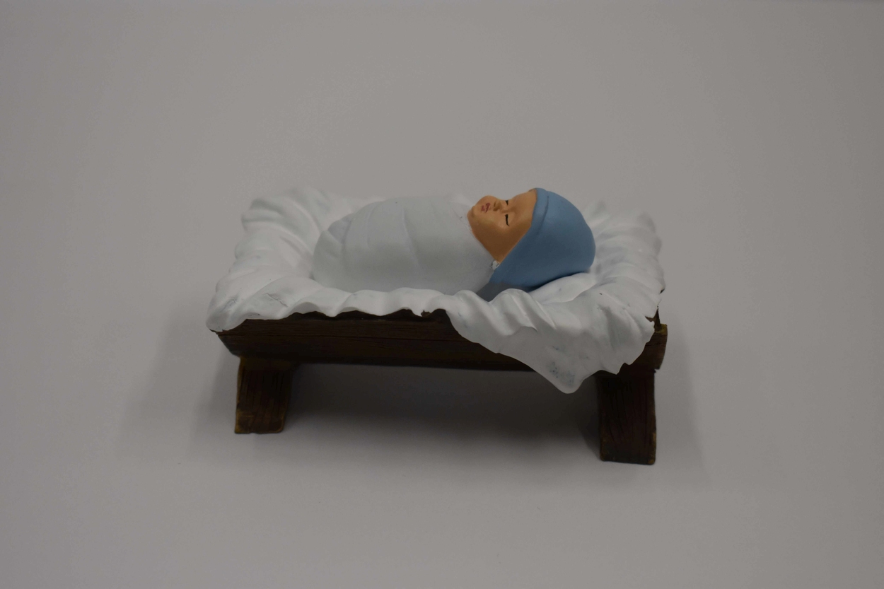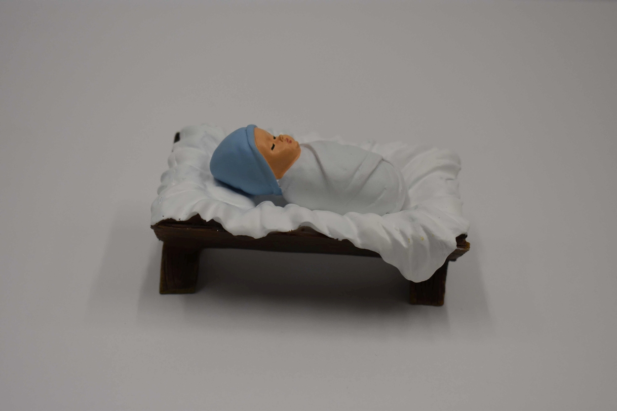 Hipster kerstgroep: Christuskind in kribbe