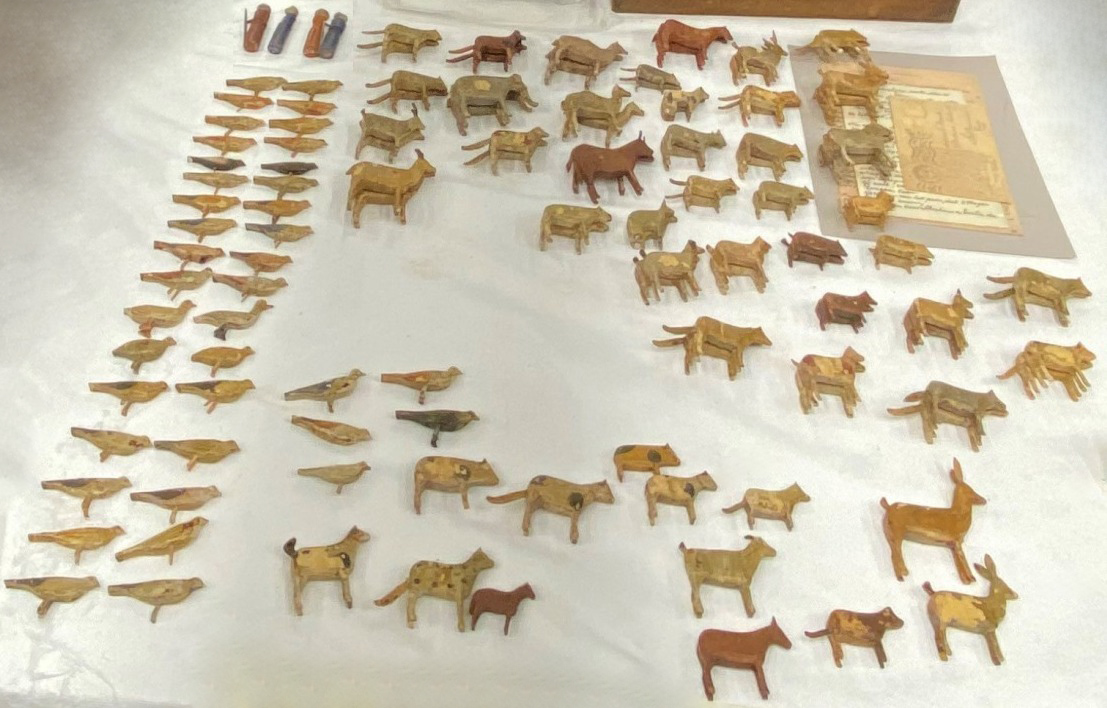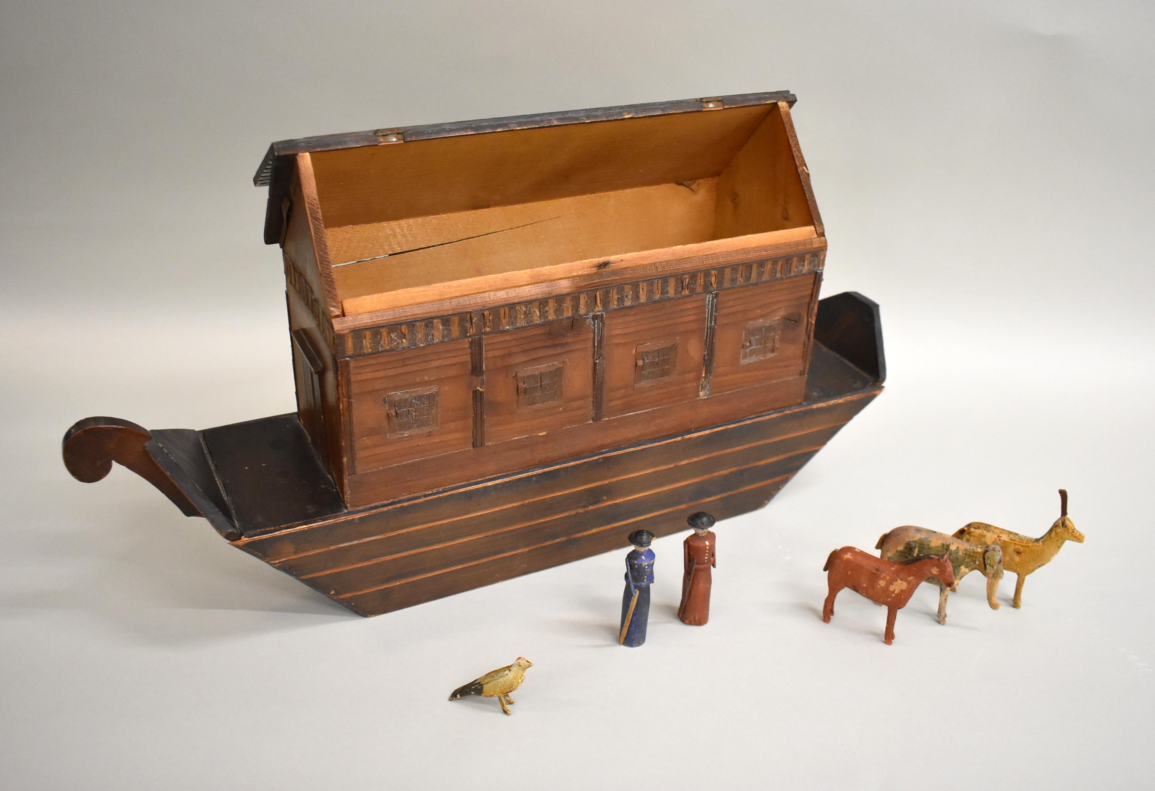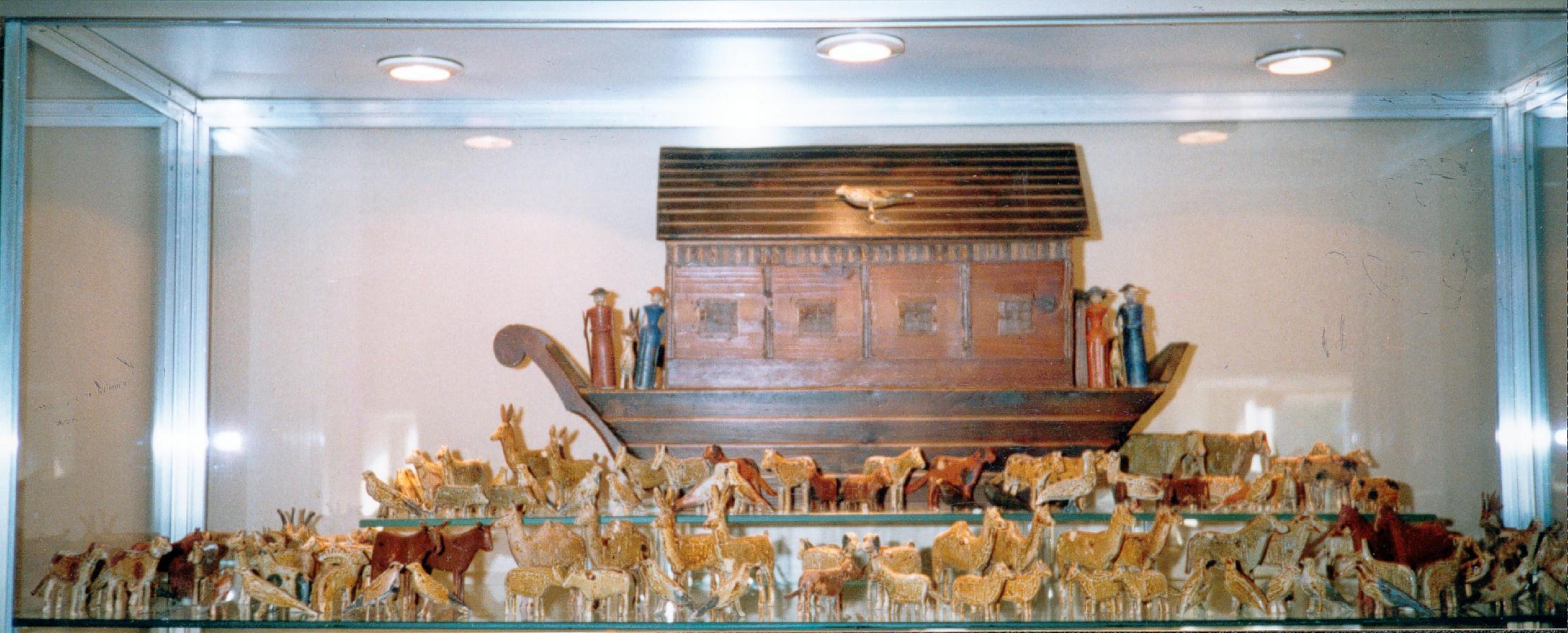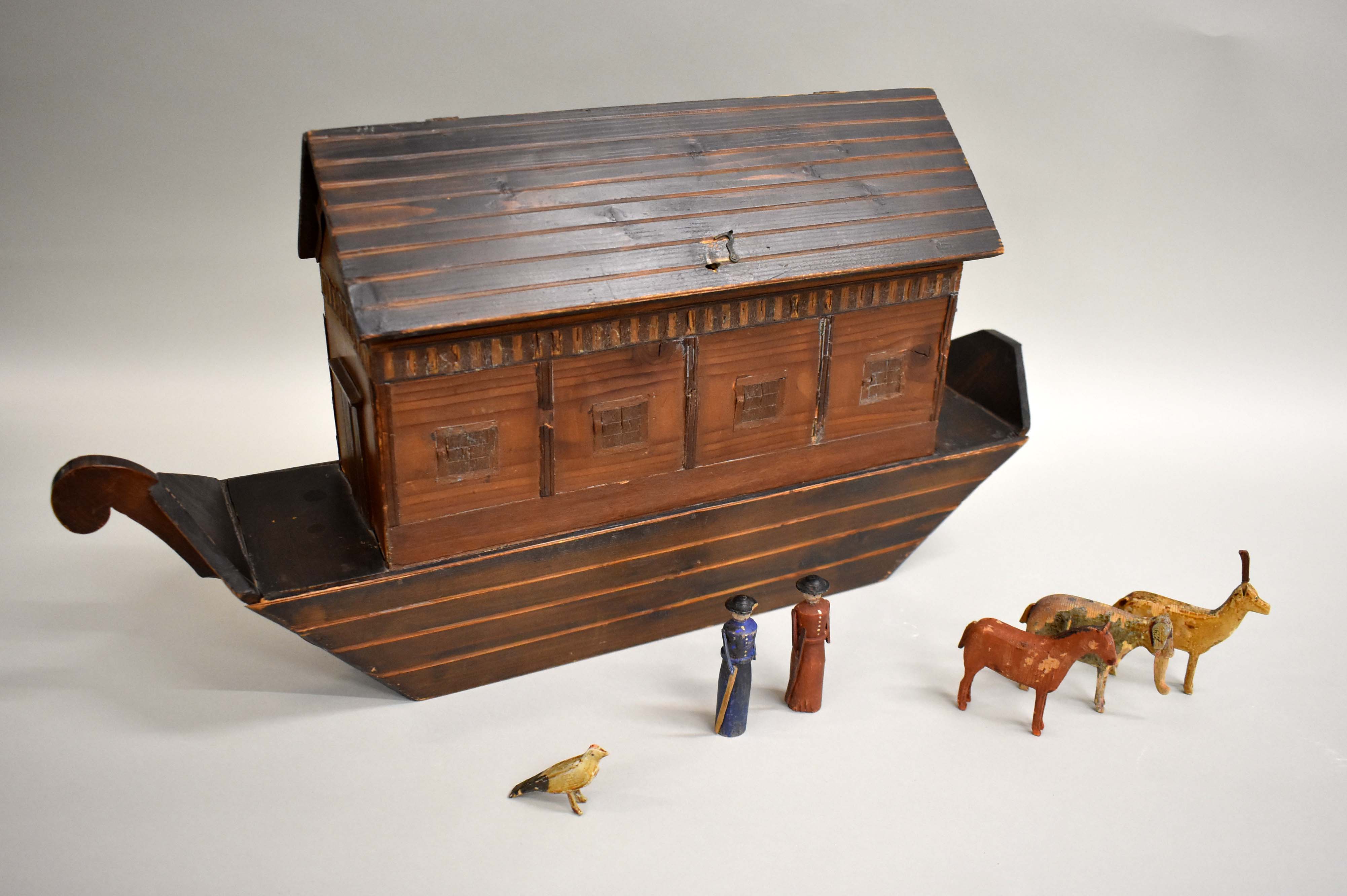 Ark van Noach met vier houten mensfiguren en 114 houten dieren (in paren)