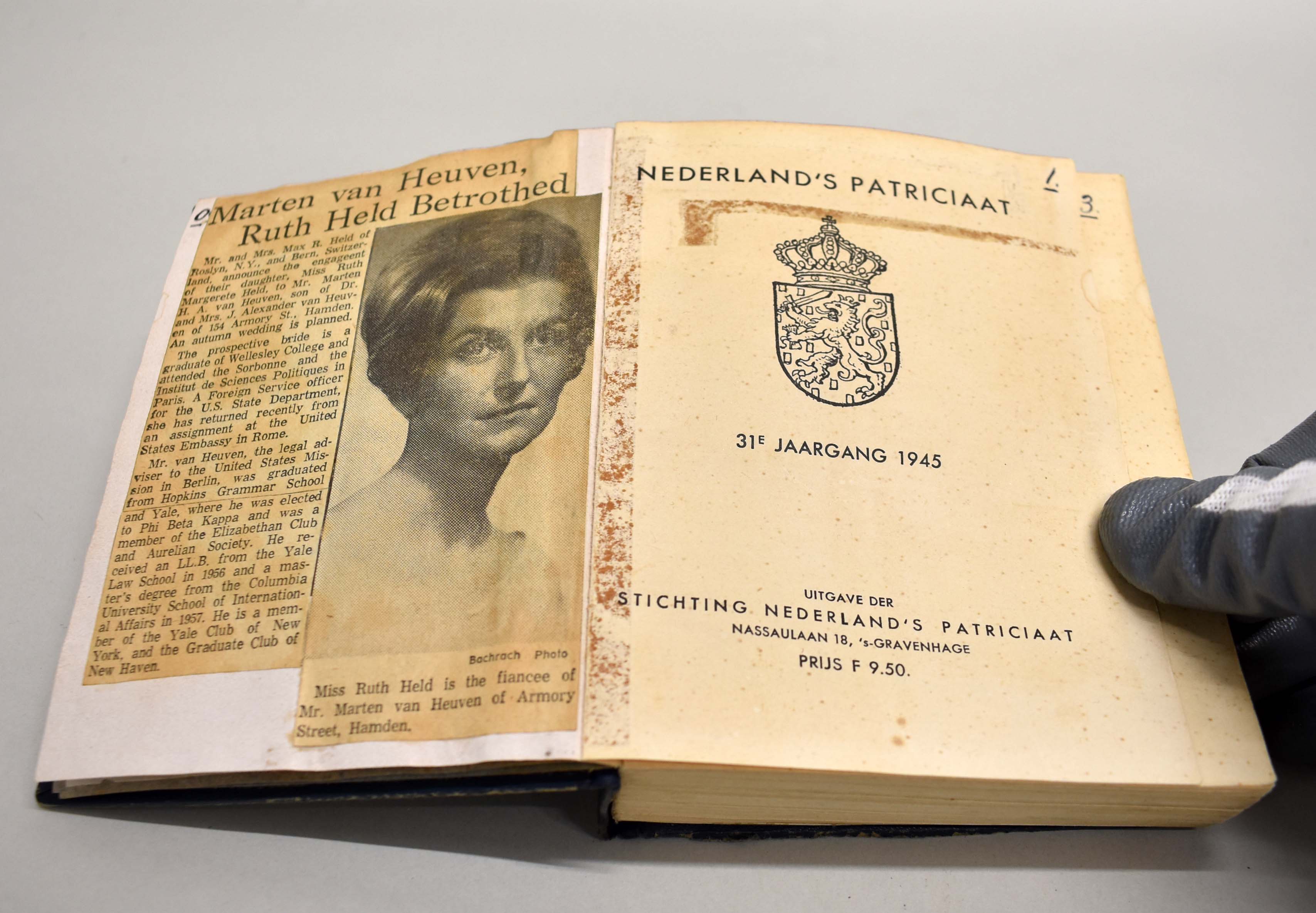 Nederland's Patriciaat 31ste jaargang 1945, met toegevoegde knipsels en handschriften met betrekking tot de familie Van Heuven