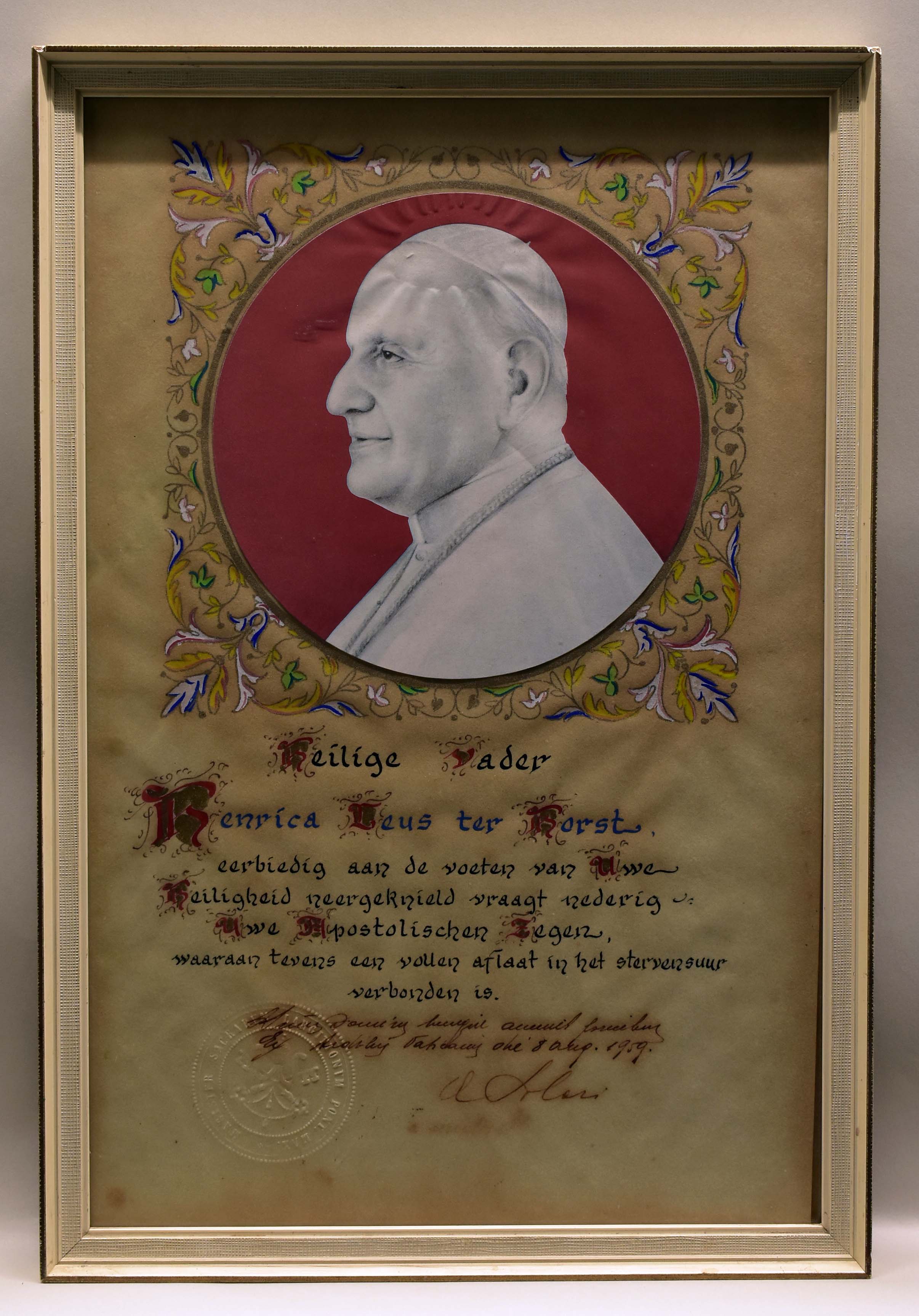 Pauselijke zegen van Johannes XXIII met portret paus