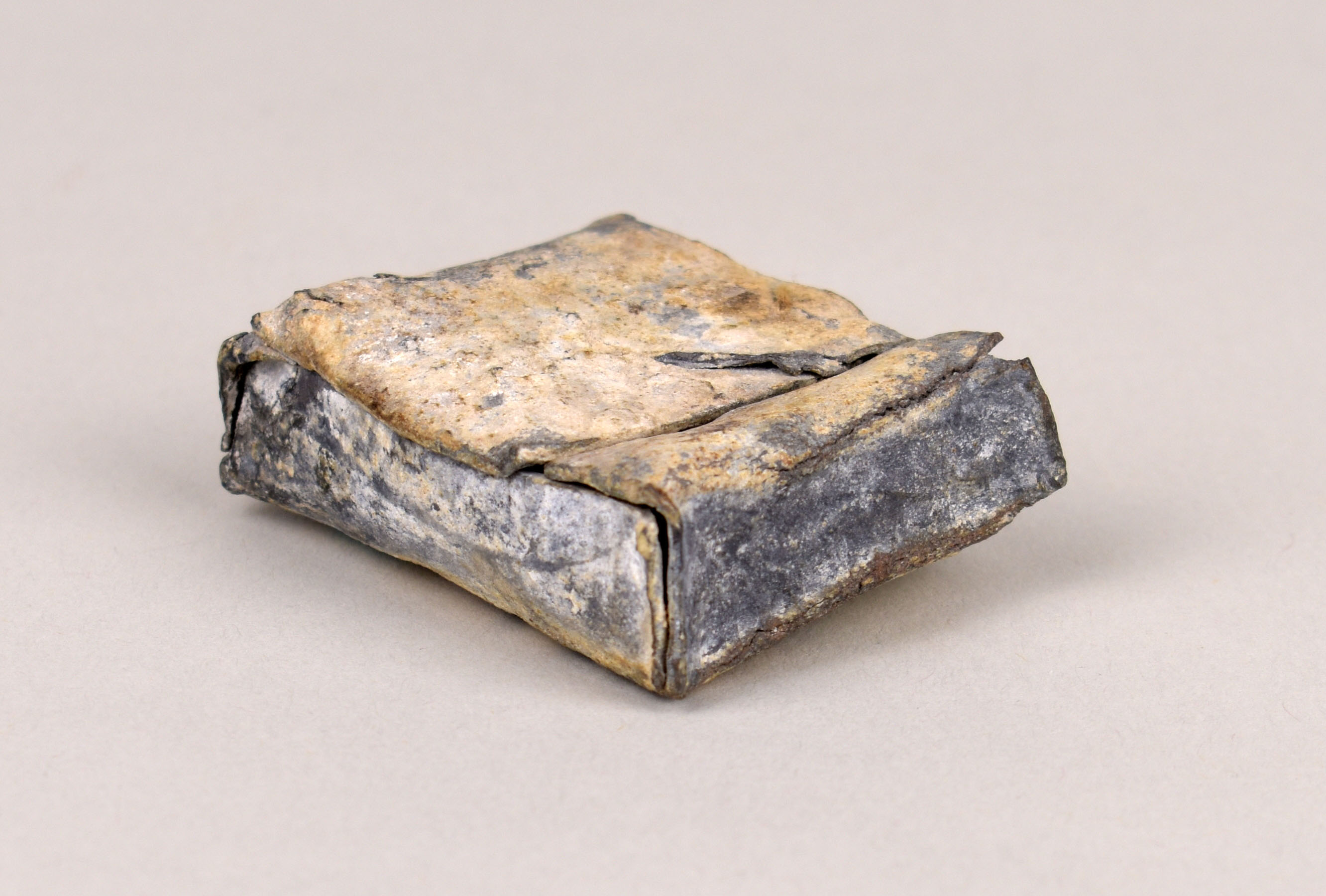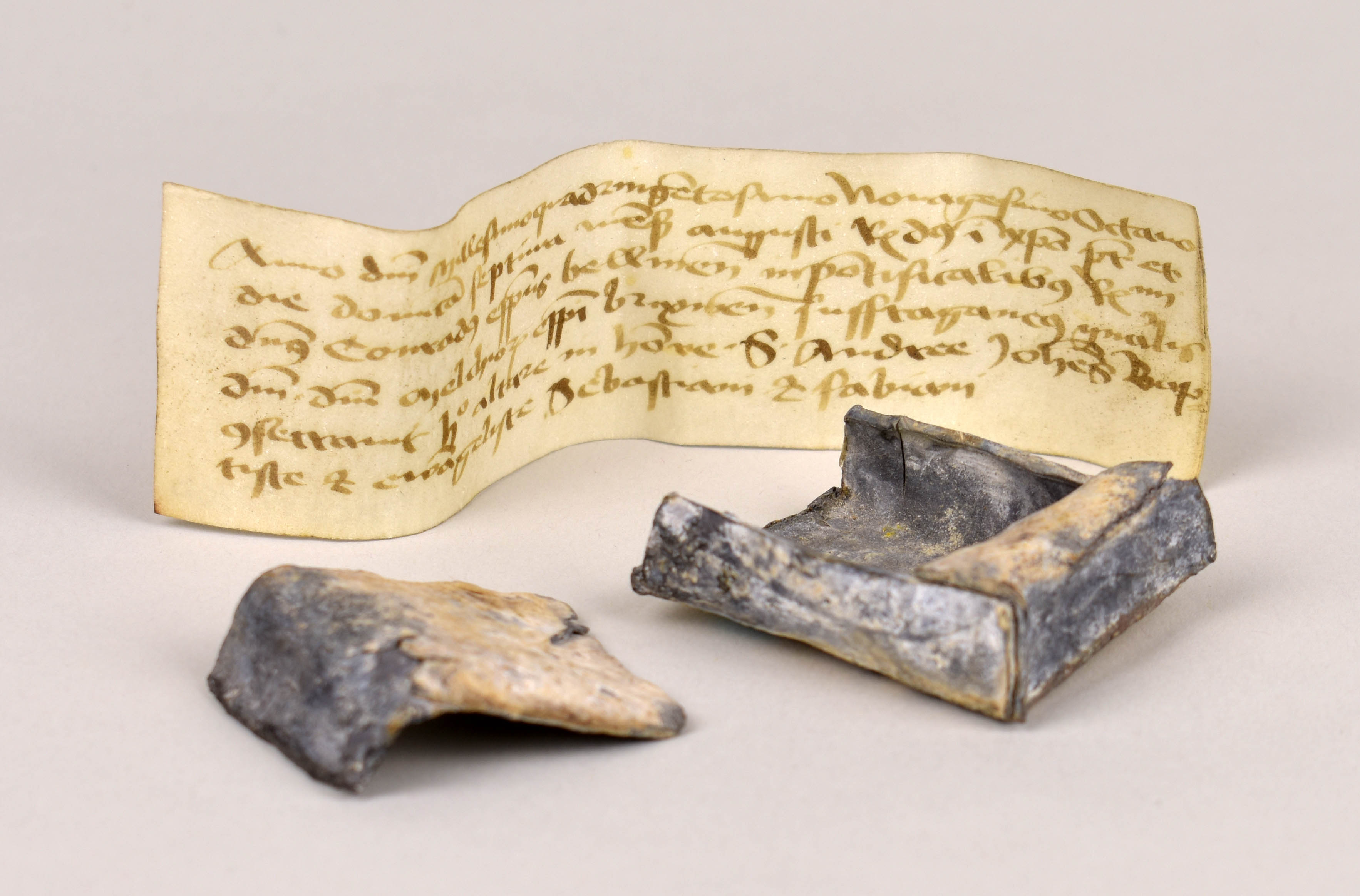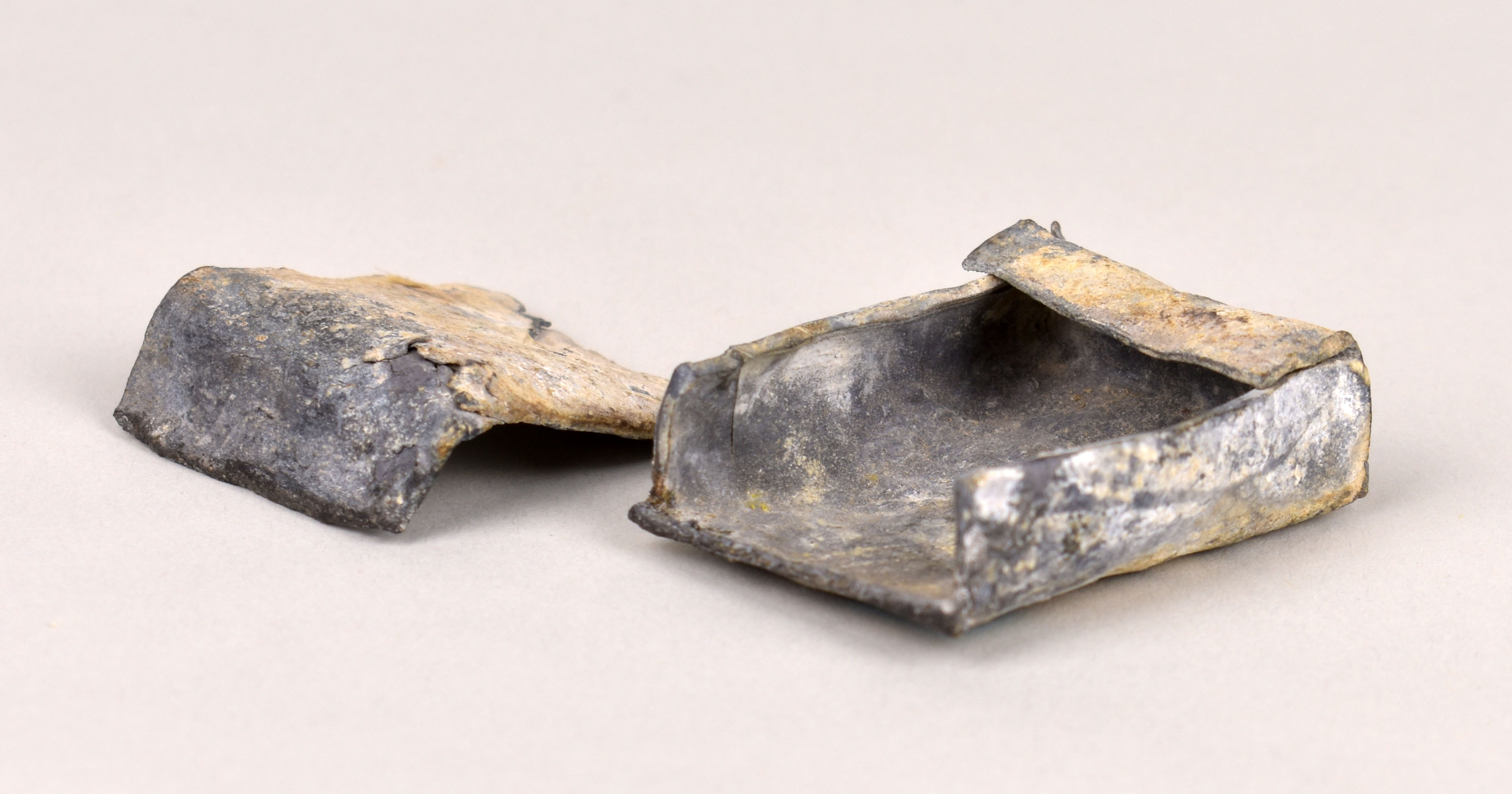 Loden doosje in twee delen voor cedula (RMCC v1090b) behorend bij reliekenglas (RMCC v1090a)