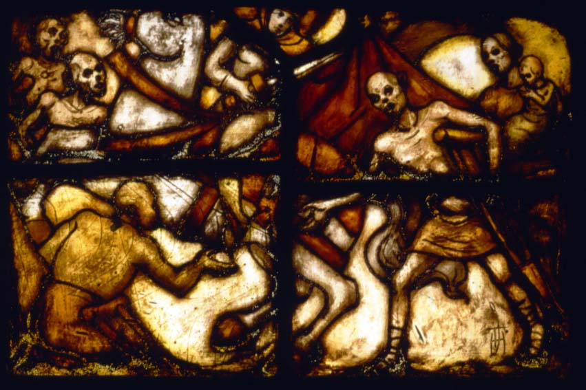 Glasschildering met St. Maarten en vijf bedelaars