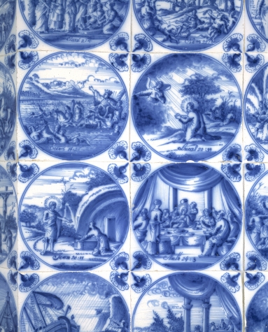 Smuiger, 278 tegels met anjers en medaillons met bijbelse voorstellingen naar Jan Luyken