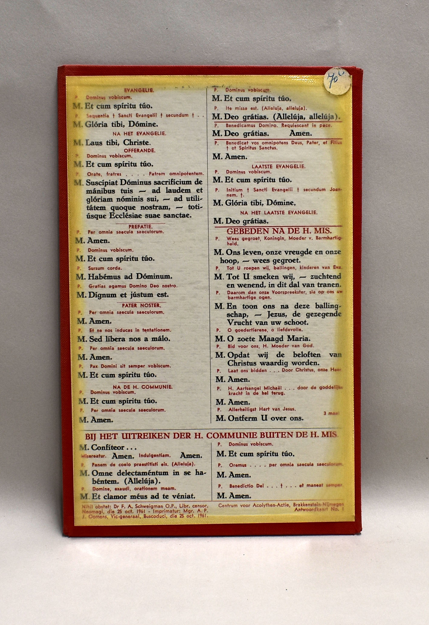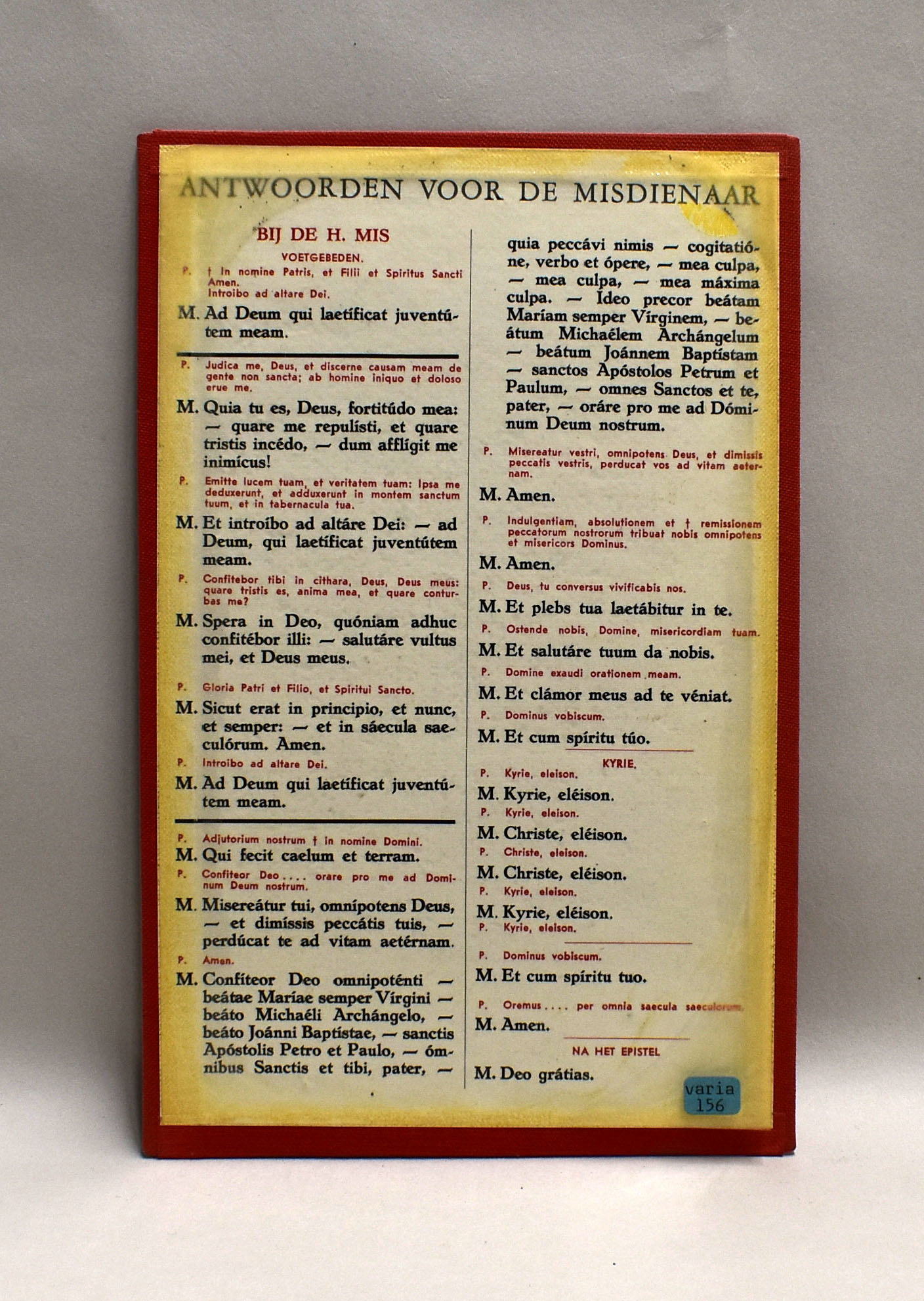 Kaart met "Antwoorden voor de misdienaar" en teksten celebrerende priester