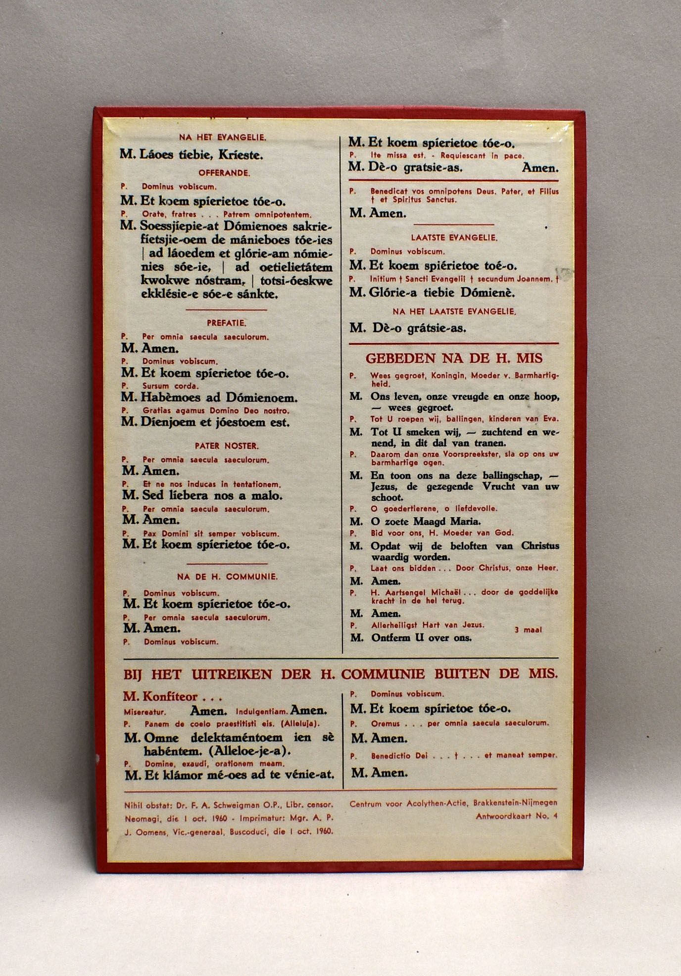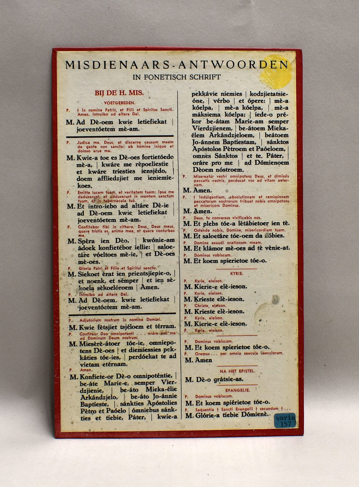 Misdienaarsantwoorden in fonetisch schrift, en tekst priester H. Mis