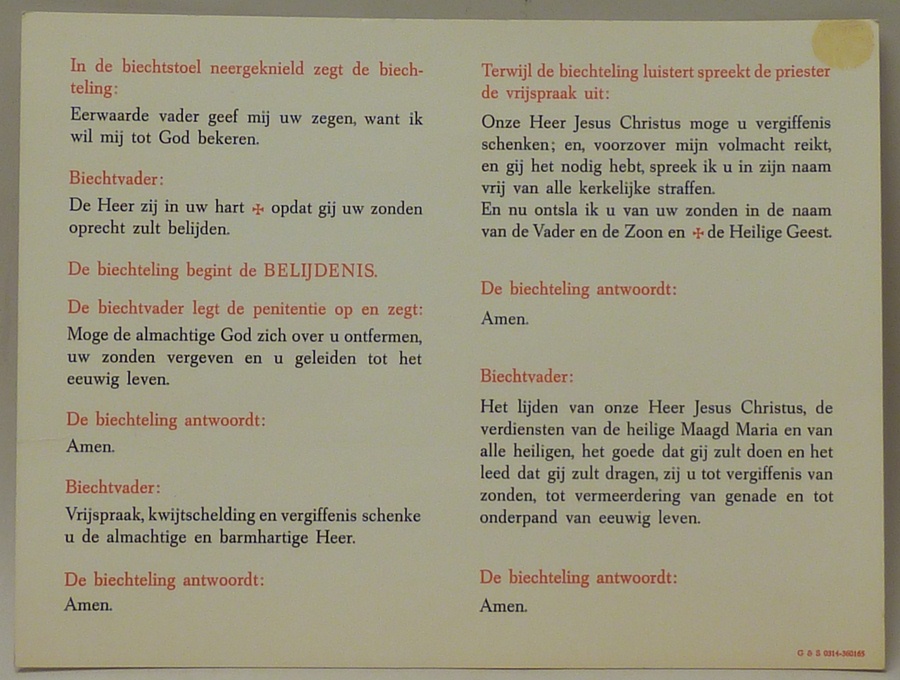 Biechtgebed, ceremonie-aanwijzingen voor het biechten