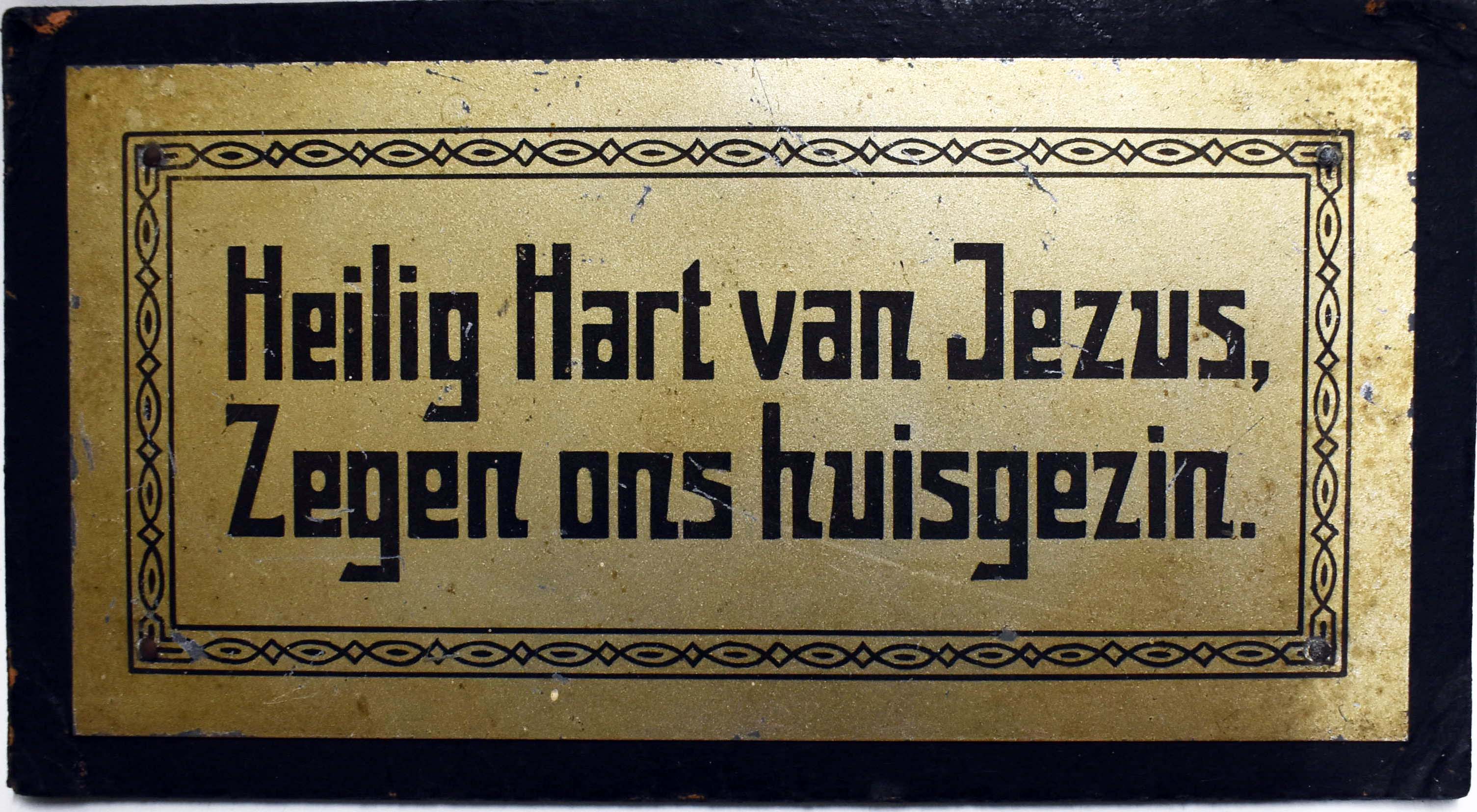 Tekstbord met "Heilig Hart van Jezus, zegen ons huisgezin"