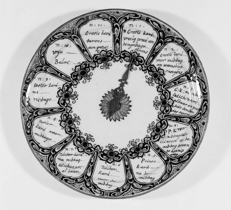 Predikantenbord met wijzer, met zomerrooster van predikanten te Rotterdam