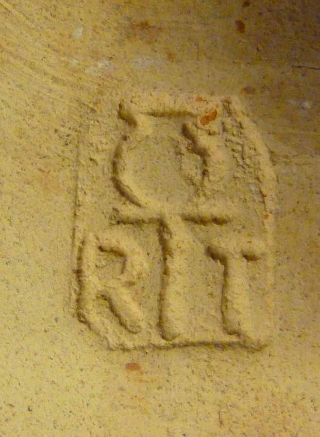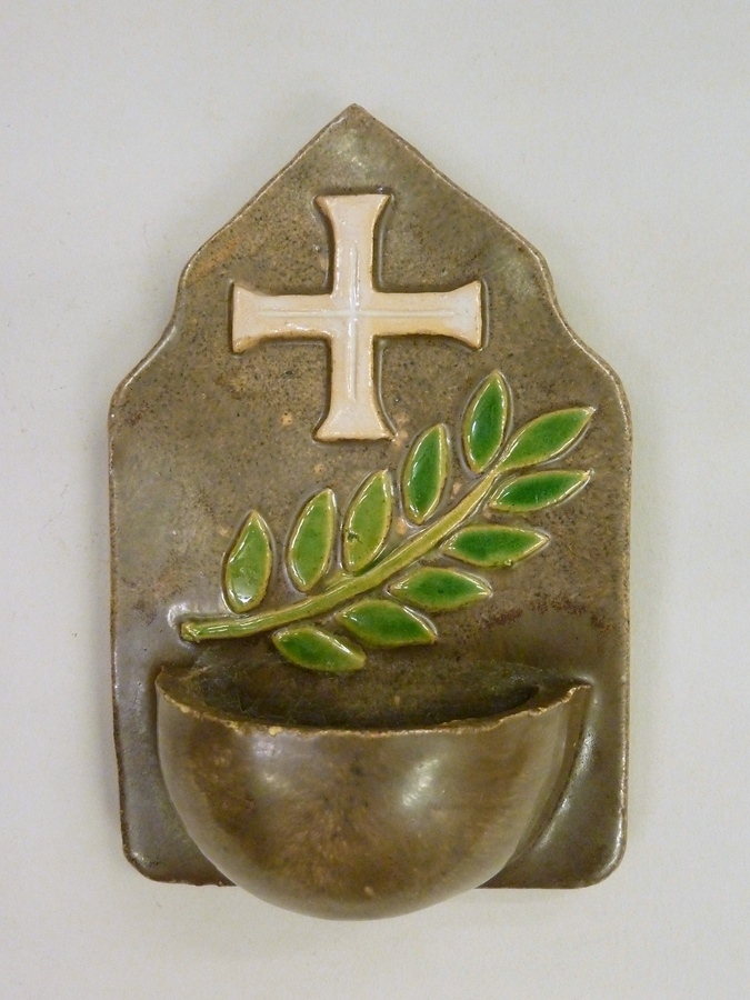 Wijwaterbakje met op achterschot lauriertak en kruis