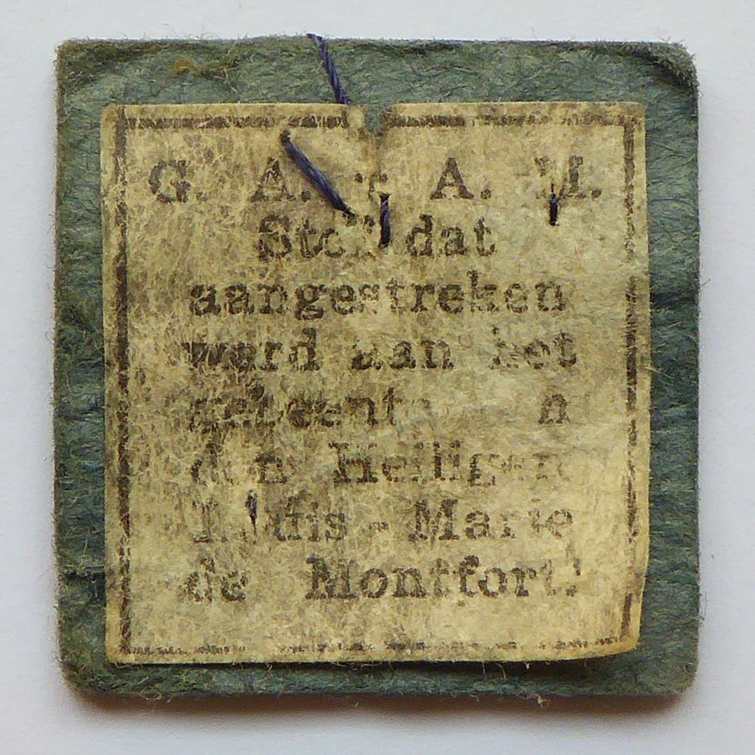Aanrakingsreliek: stof op karton, aangestreken aan H. Louis-Marie de Montfort