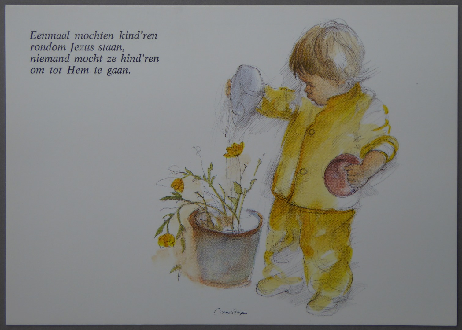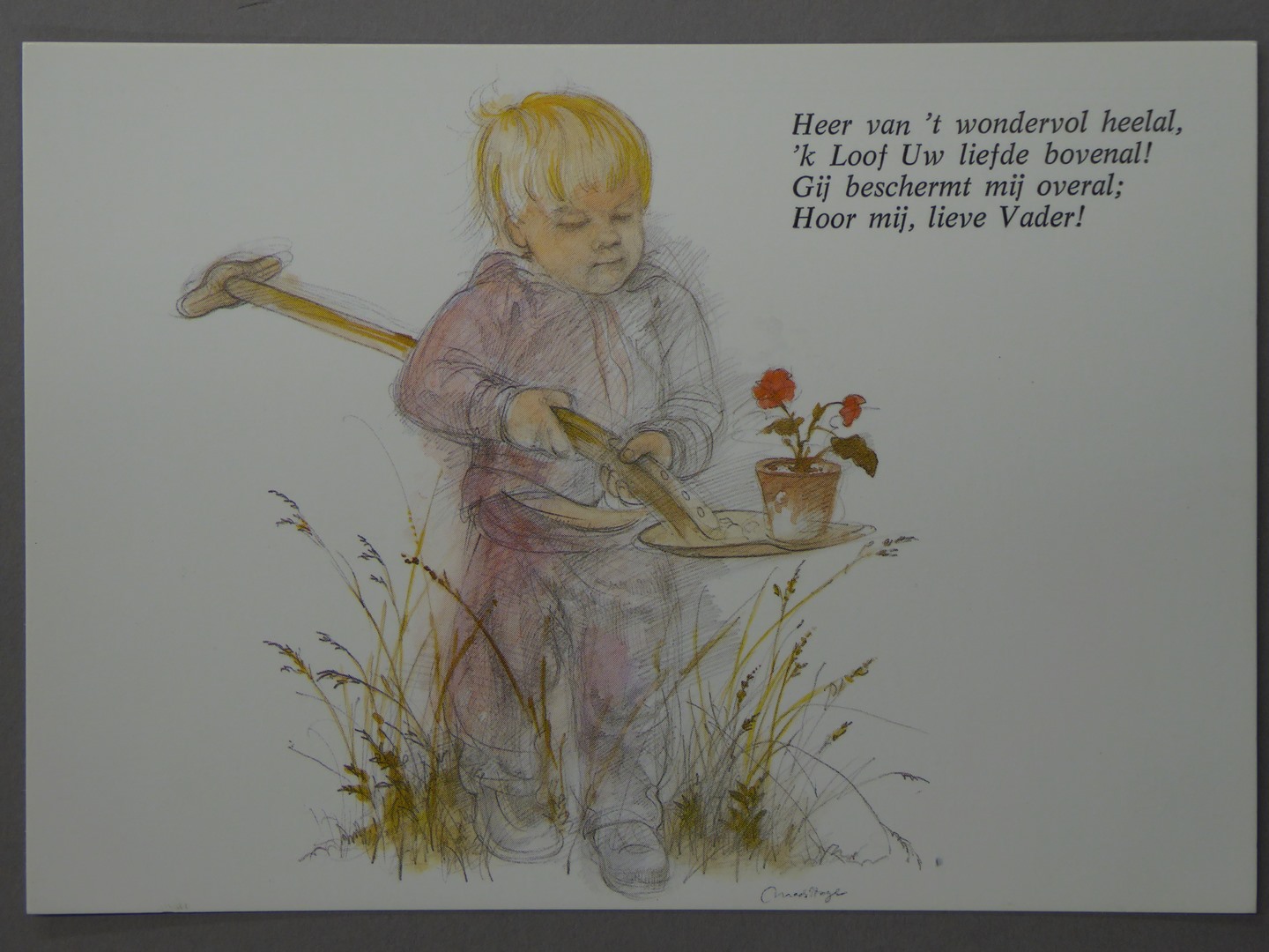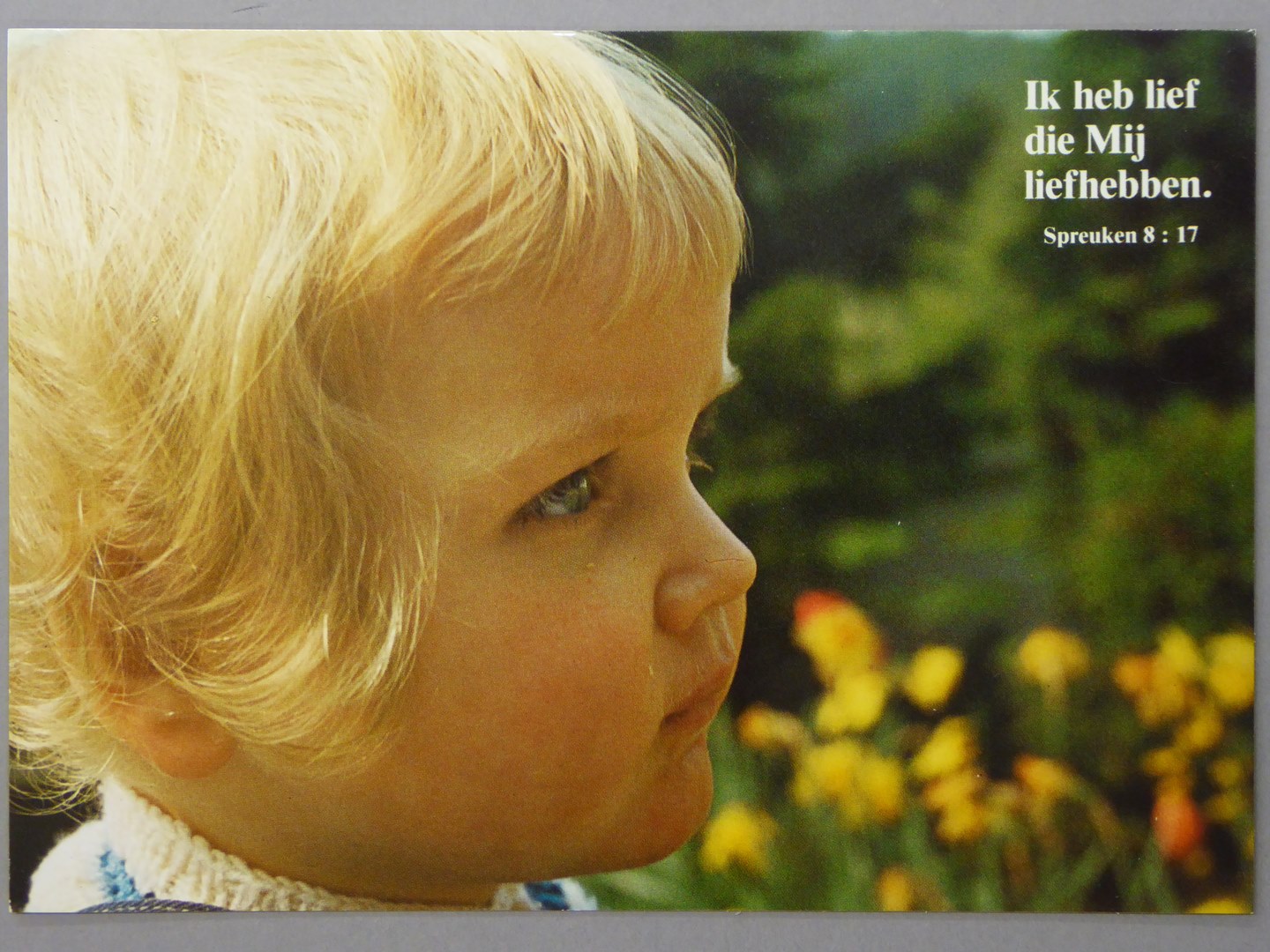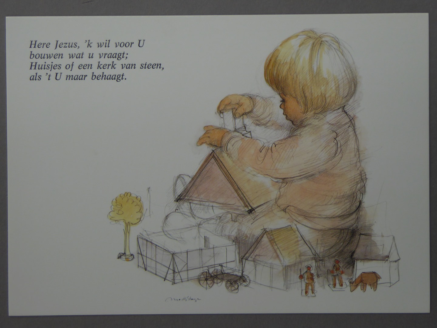Prentbriefkaarten (elf) met kinderen en gedichtjes of bijbelteksten