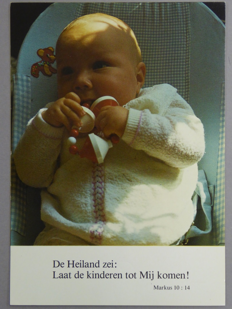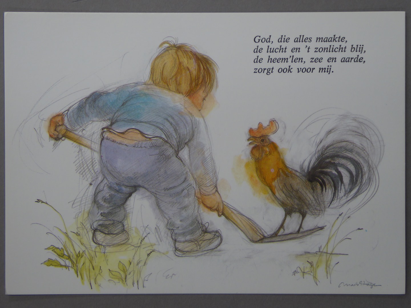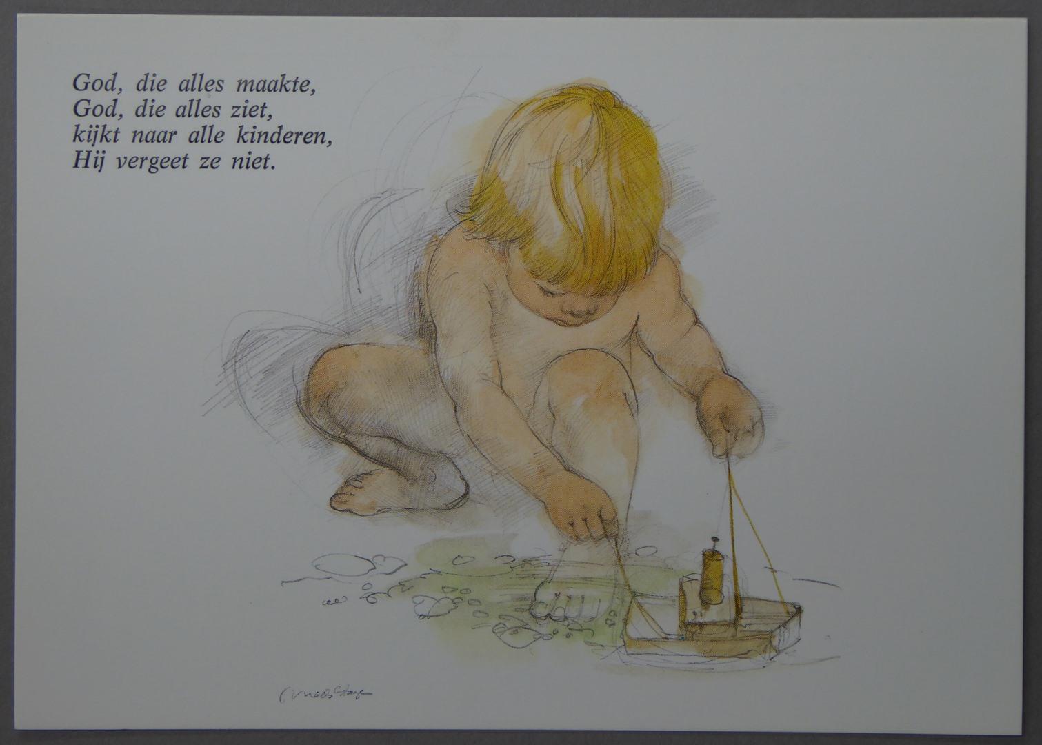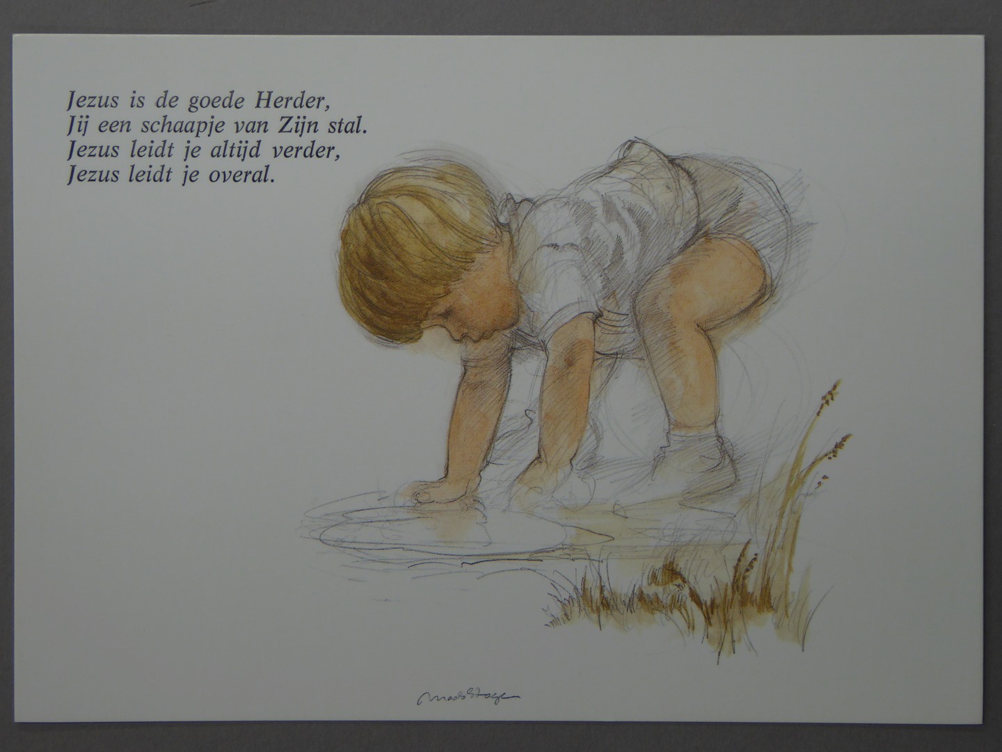 Prentbriefkaarten (elf) met kinderen en gedichtjes of bijbelteksten