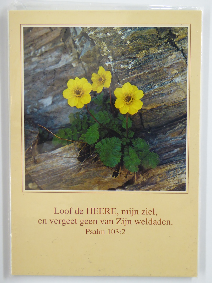 Puzzel en prentbriefkaart met bijbelteksten in de statenvertaling