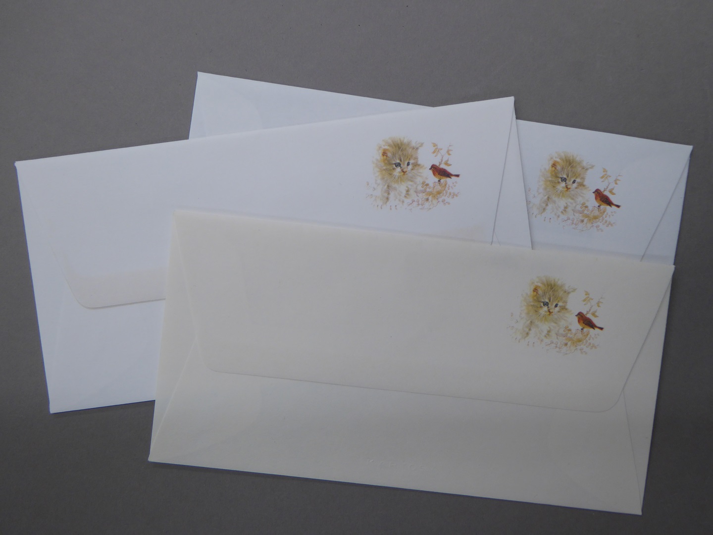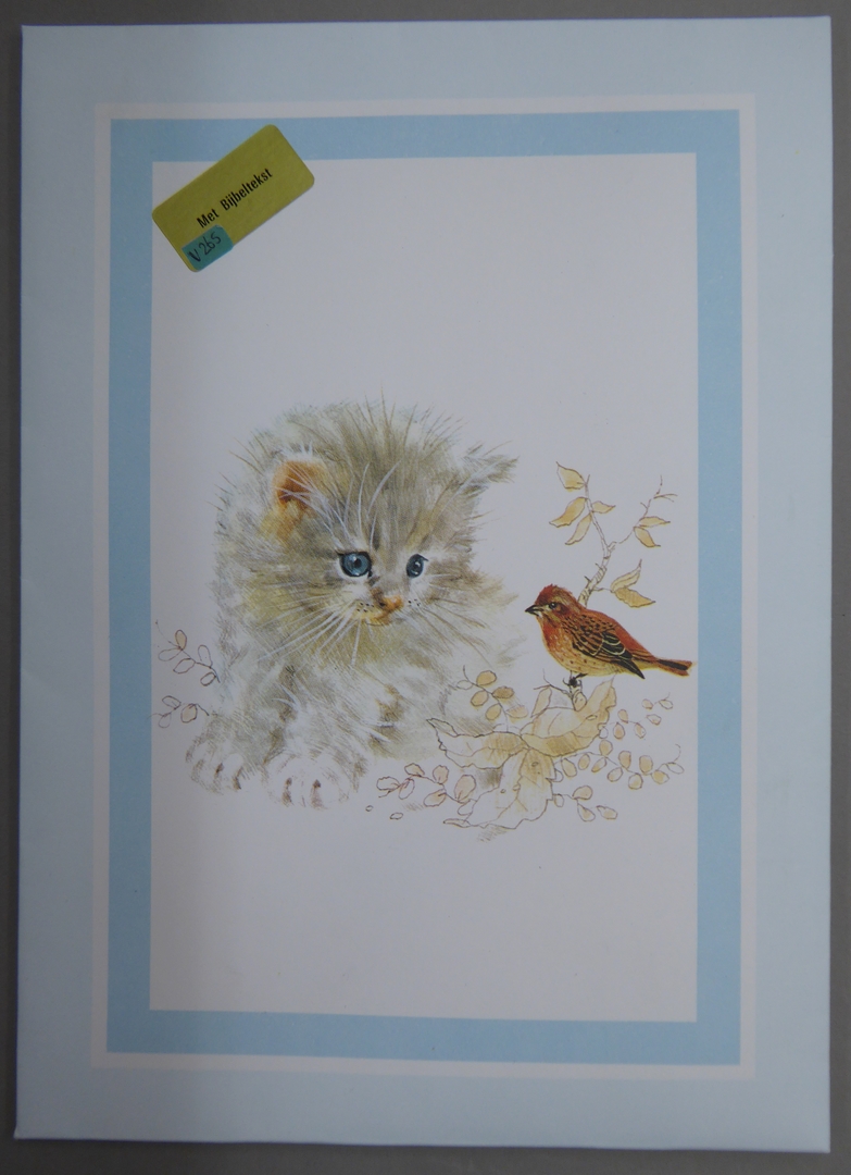 Postpapier met afbeelding poes en vogel en bijbeltekst Psalm 115:13, in envelop