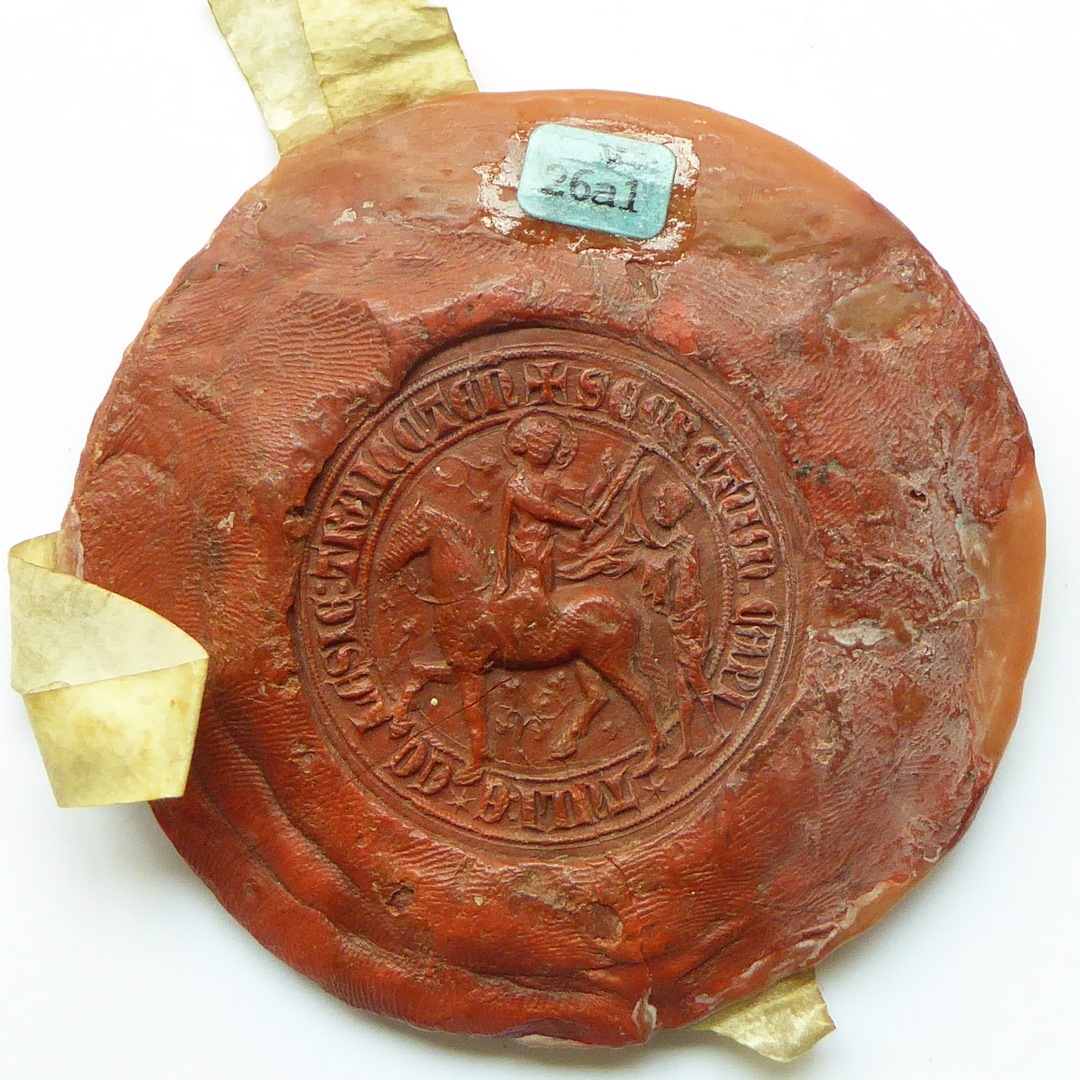 Rood zegel van Utrechtse oorkonde: kapittel Dom St. Maarten, kz. St. Maarten te paard
