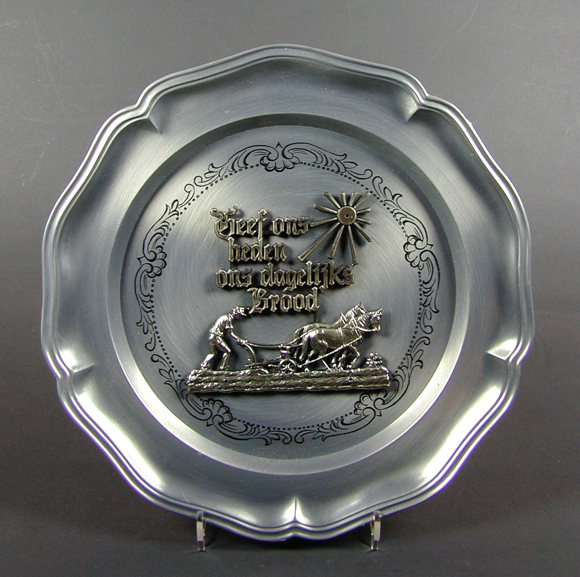 Wandbord met ploegende landman en "geef ons heden ons dagelijks brood"