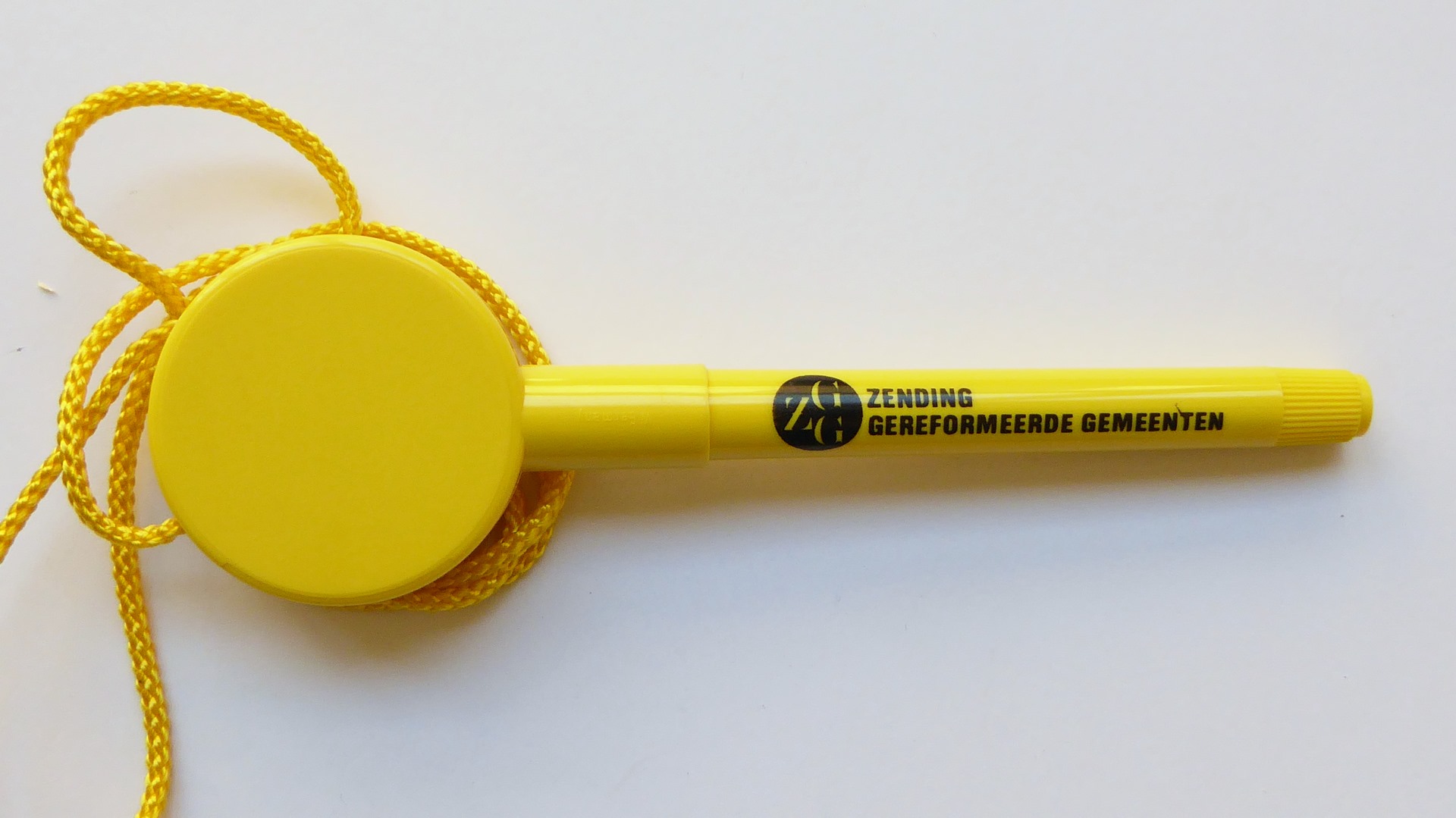 Pen met geel koord voor zending gereformeerde gemeenten