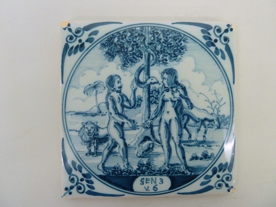 Tegel met Adam en Eva, "GEN 3 v.6"