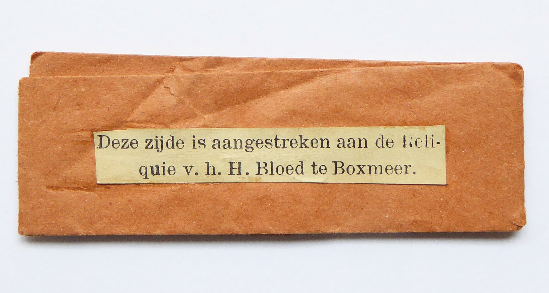 Papieren zakje met reliek uit bedevaartsoord: aangestreken reliek Boxmeer