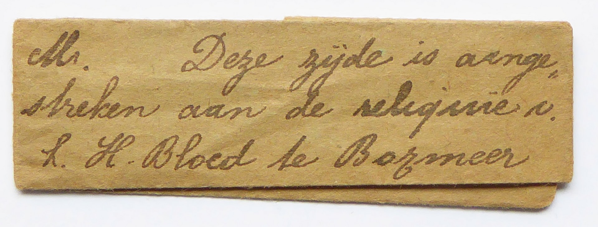Papieren zakje met reliek uit bedevaartsoord: aangestreken reliek Boxmeer