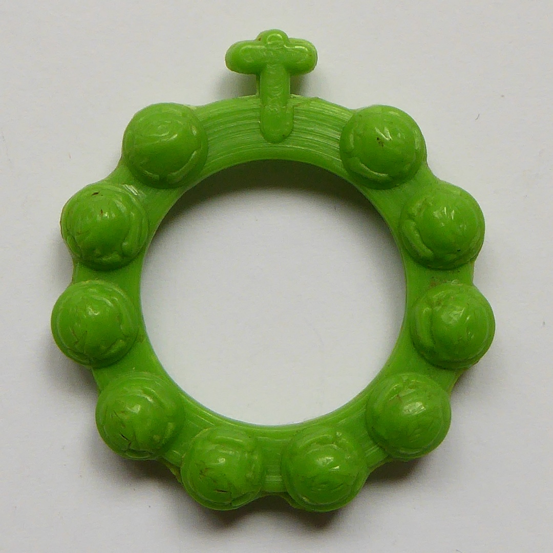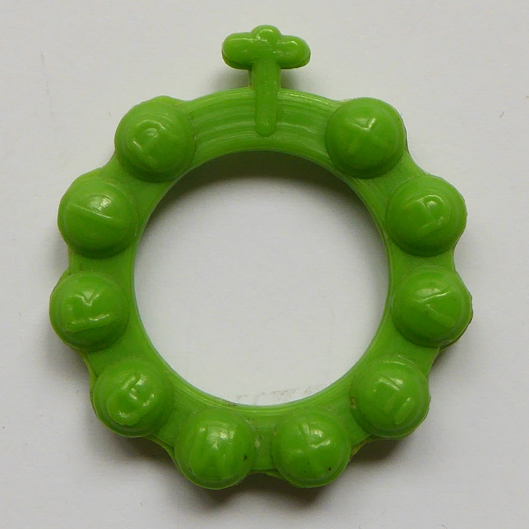 Groene rozenkransring met kruisje en "Ave Maria"