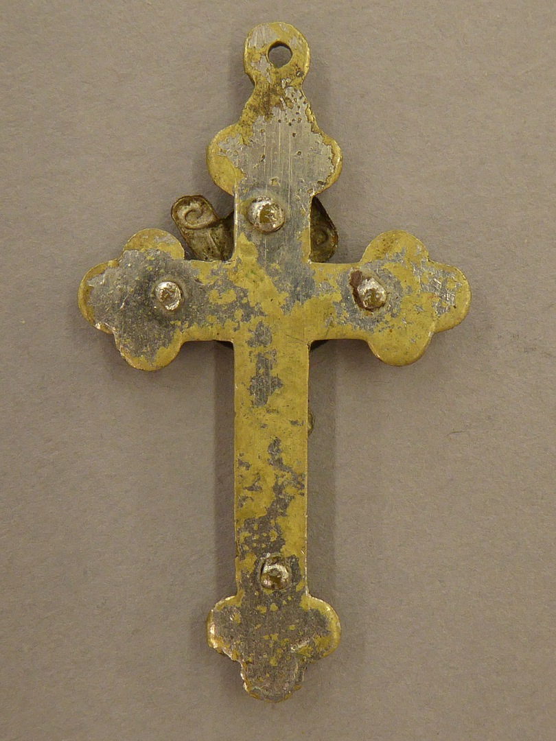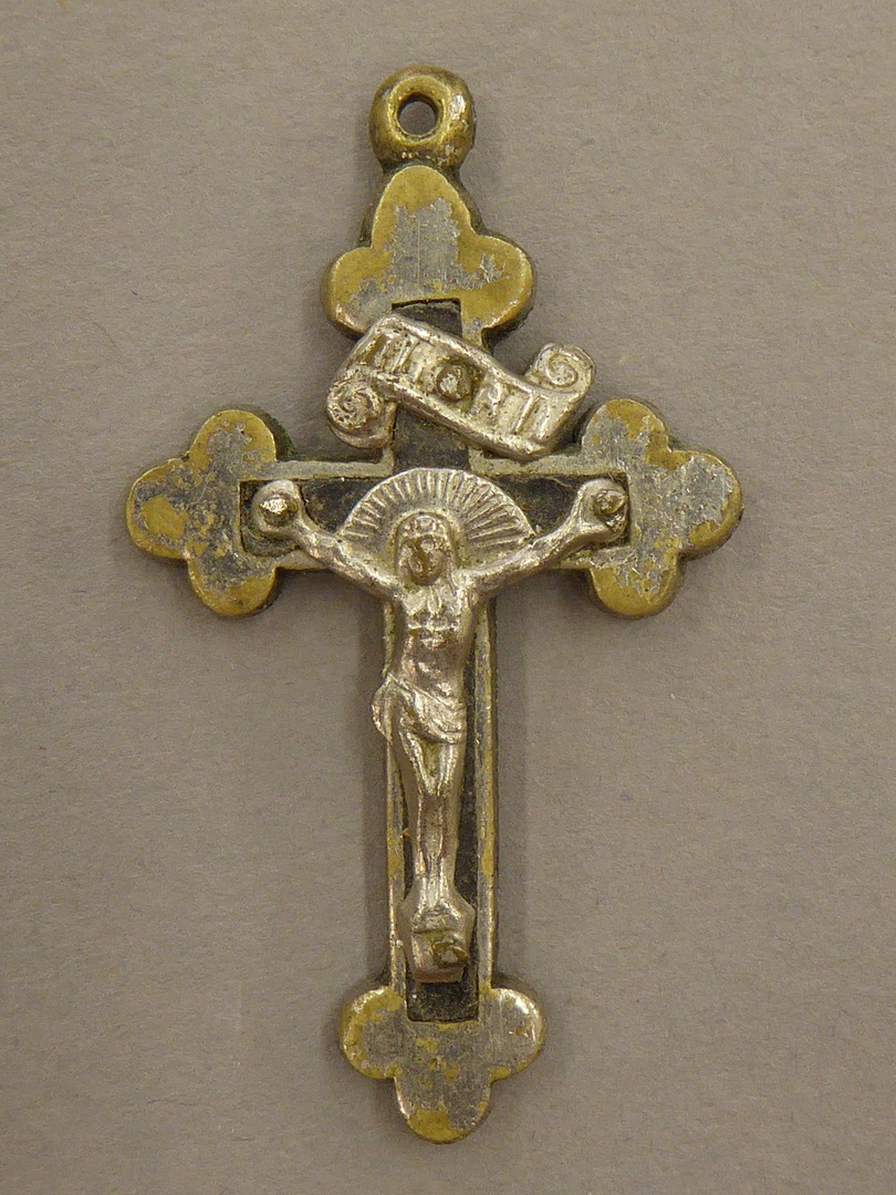 Kruisbeeldje, rozenkruis met corpus waarboven INRI
