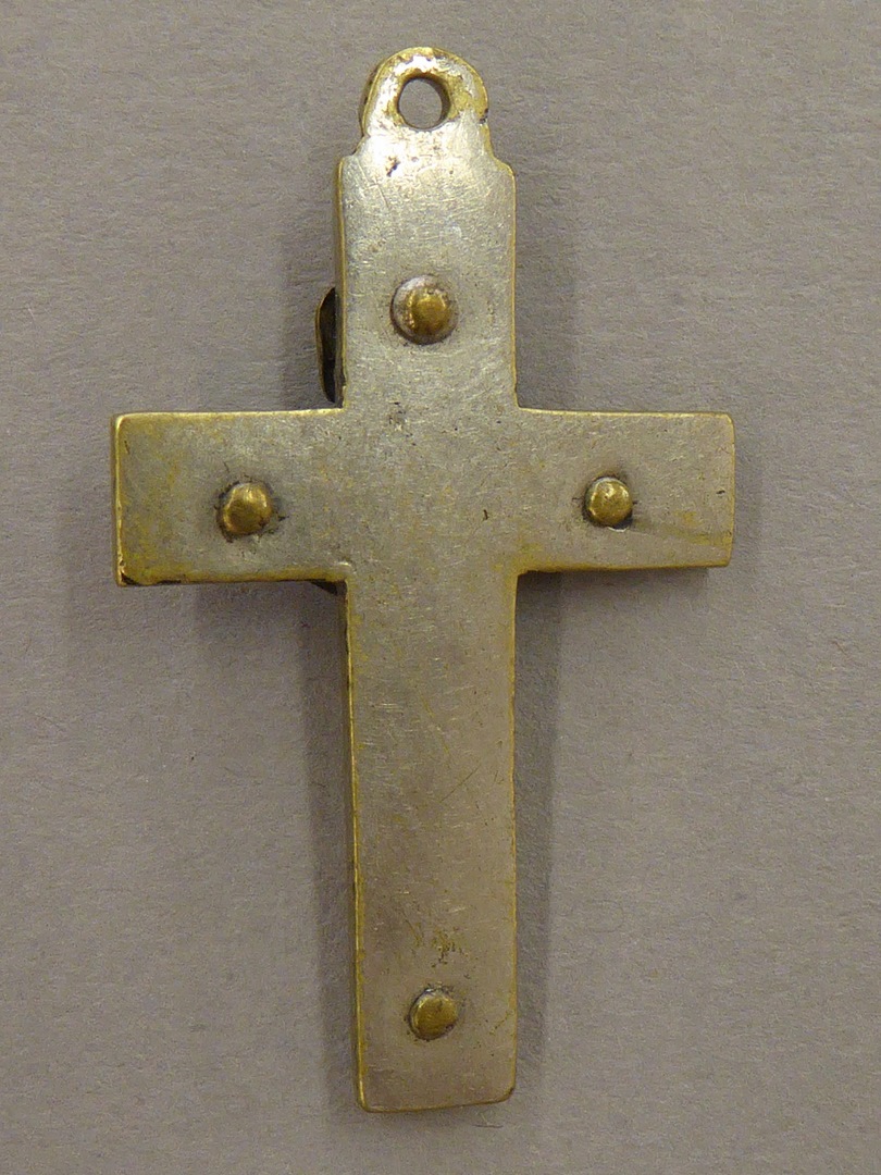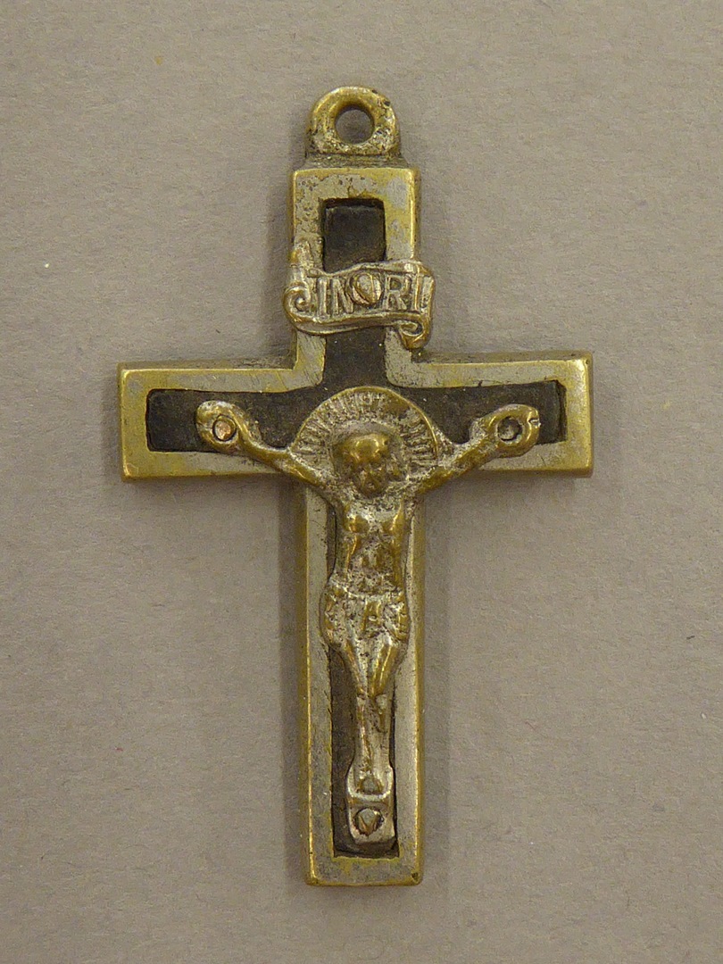 Kruisbeeldje, rozenkruis met corpus waarboven INRI