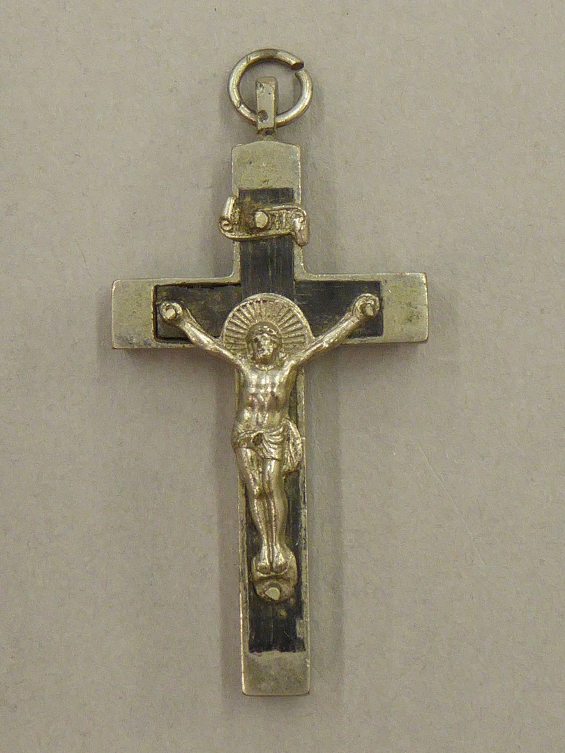 Kruis ingelegd met hout, met metalen corpus