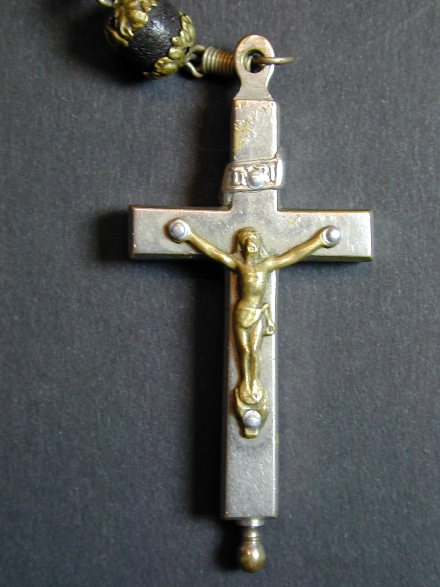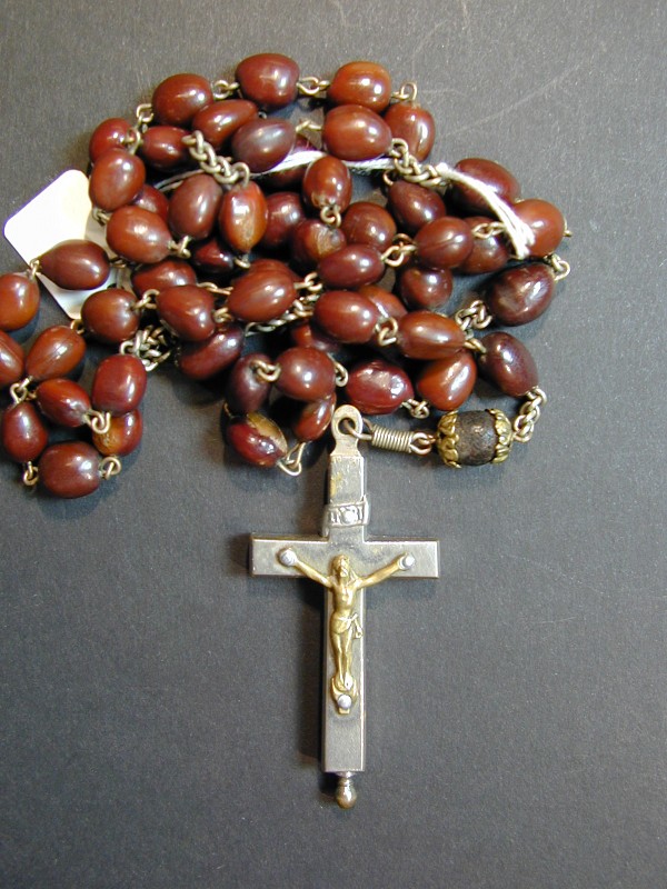 Rozenkrans van donkerbruine pitten met scharnierend kruisbeeld