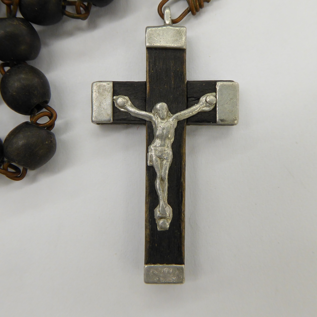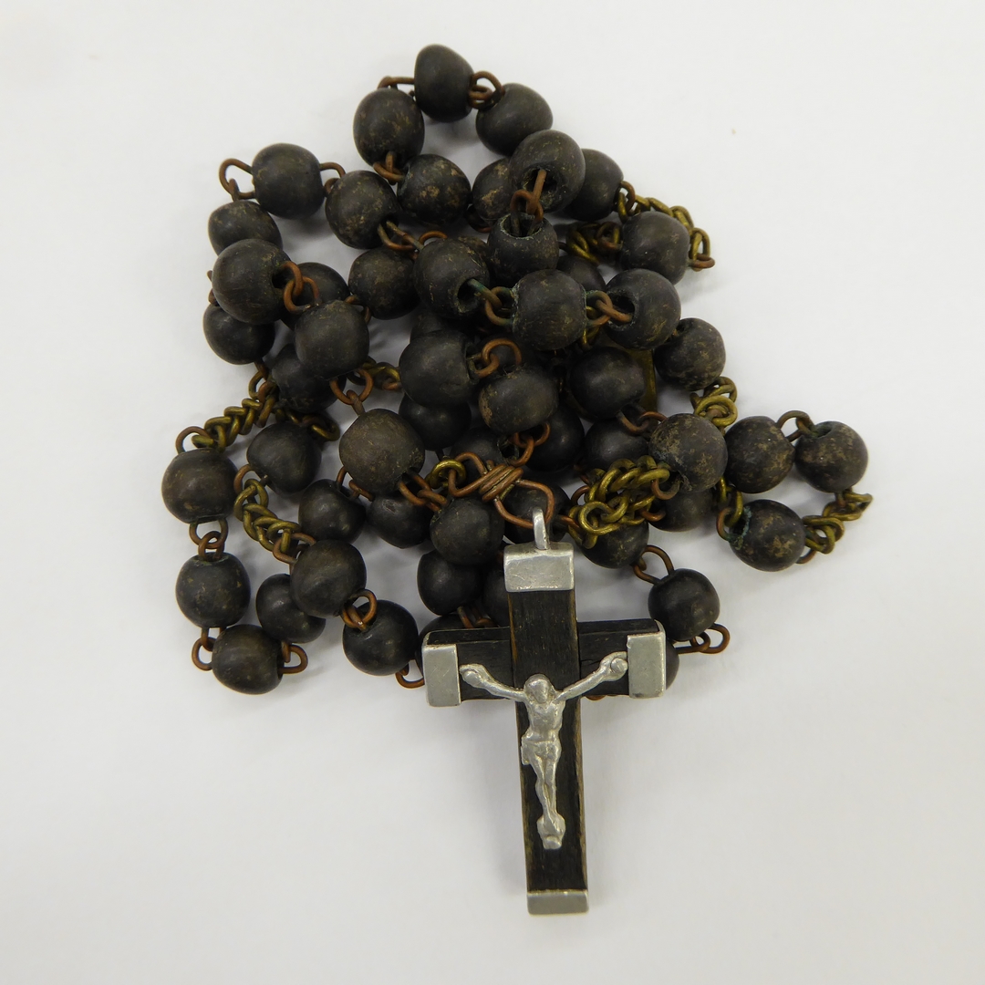 Rozenkrans van zwarte kralen met kruisbeeldje