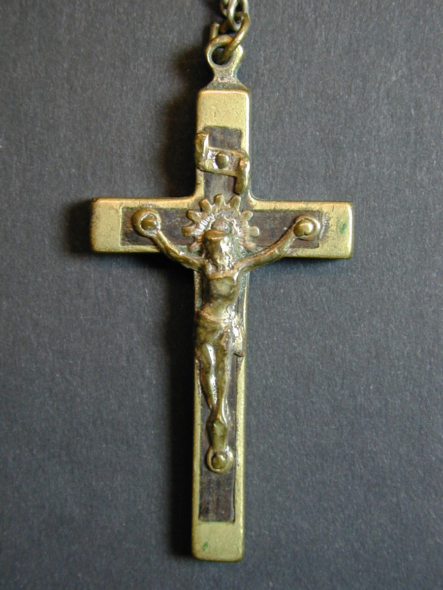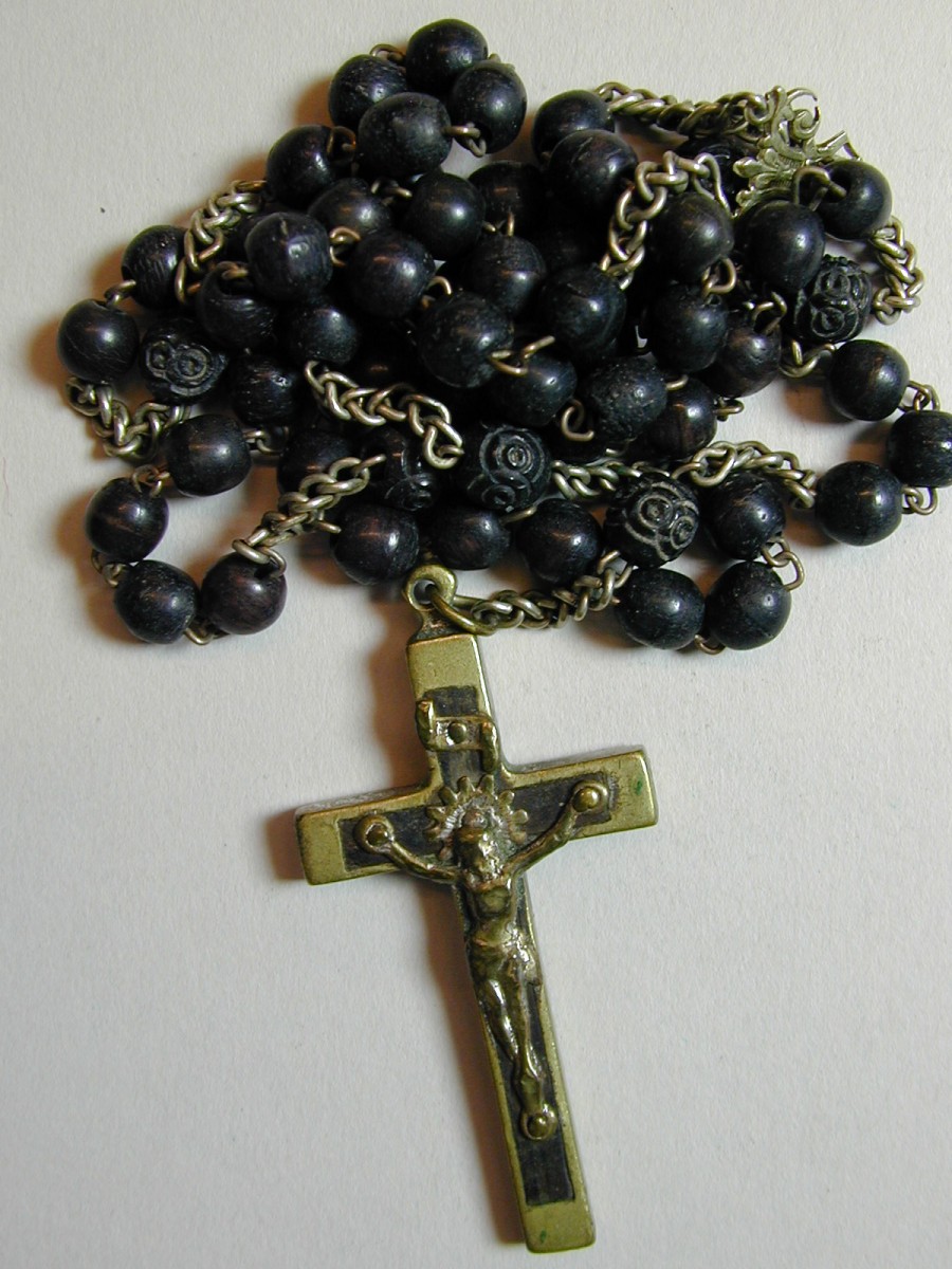 Rozenkrans van zwarte kralen met kruisbeeldje